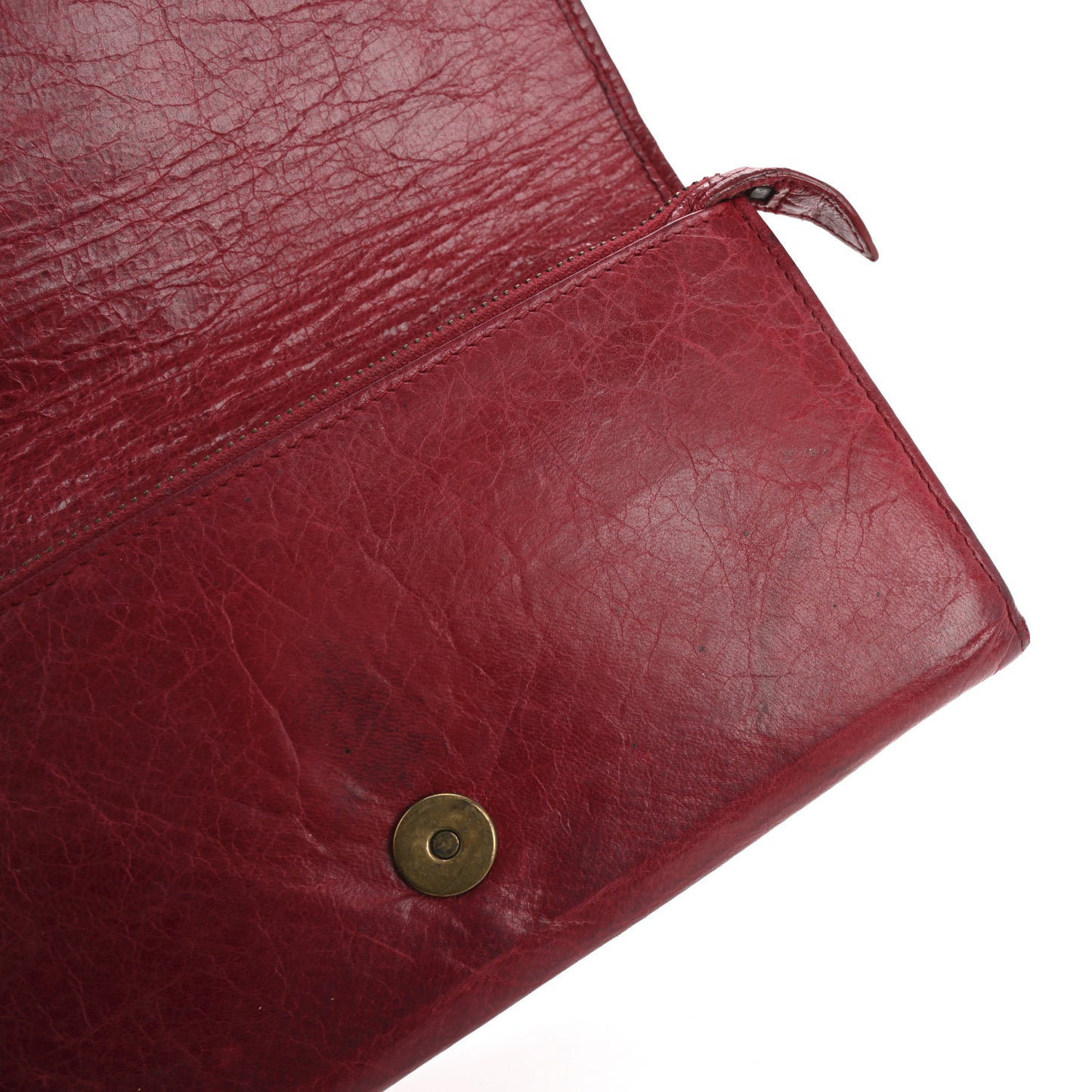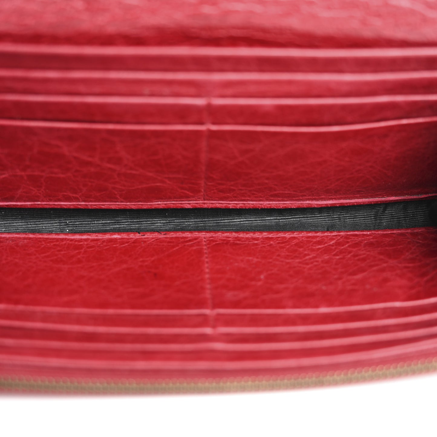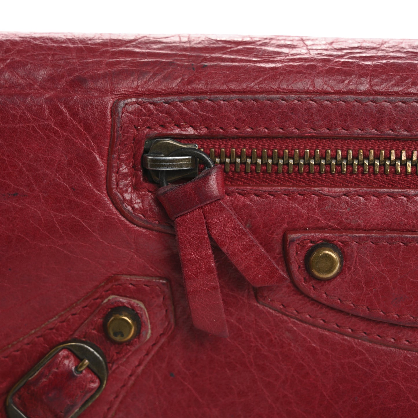 This is an authentic BALENCIAGA Agneau Gold Hardware Continental Zip Around Wallet in Rose Thulian. This chic wallet is finely crafted of lambskin leather in dark pink. The wallet has features of the classic Balenciaga totes, including belts and patches with gold hardware including buckles, studs, and a signature zipper. The front flap opens to a partitioned leather and fabric interior with card slots, patch pockets, and a zipper compartment.Follow this item for alerts. Balenciaga is a registered trademark of Balenciaga. FASHIONPHILE is not affiliated with Balenciaga.