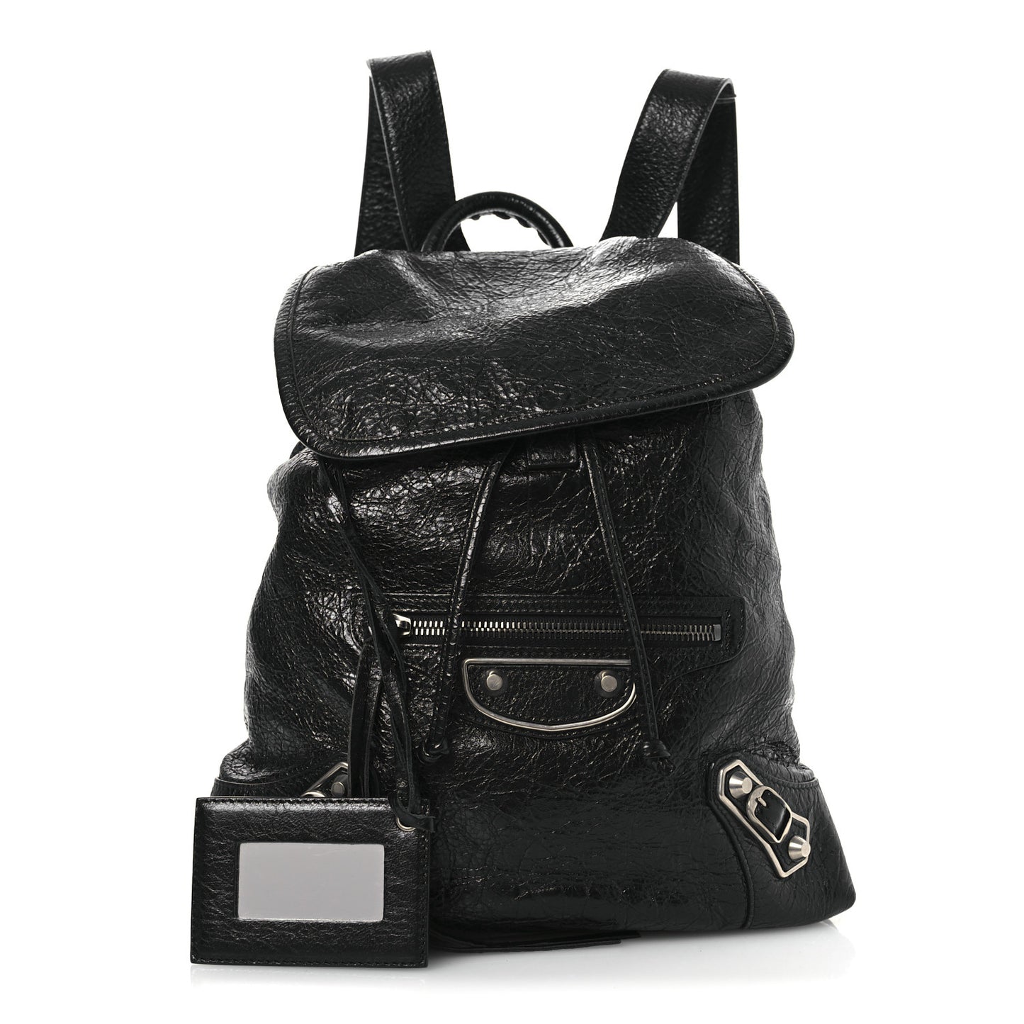 Balenciaga/ Bags/ Handbags /Balenciaga Agneau Silver Metallic Edge Hardware Backpack Black