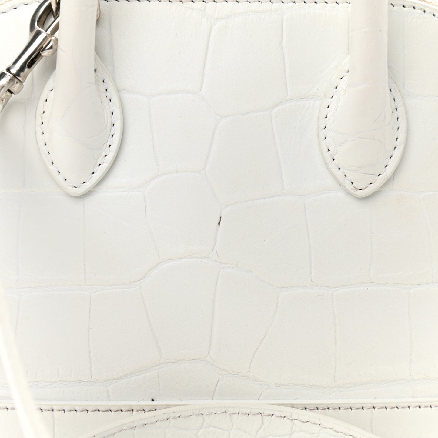 Balenciaga/ Bags/ Shoulder Bags /Balenciaga Calfskin Crocodile Embossed XXS Ville Top Handle Bag White Black
