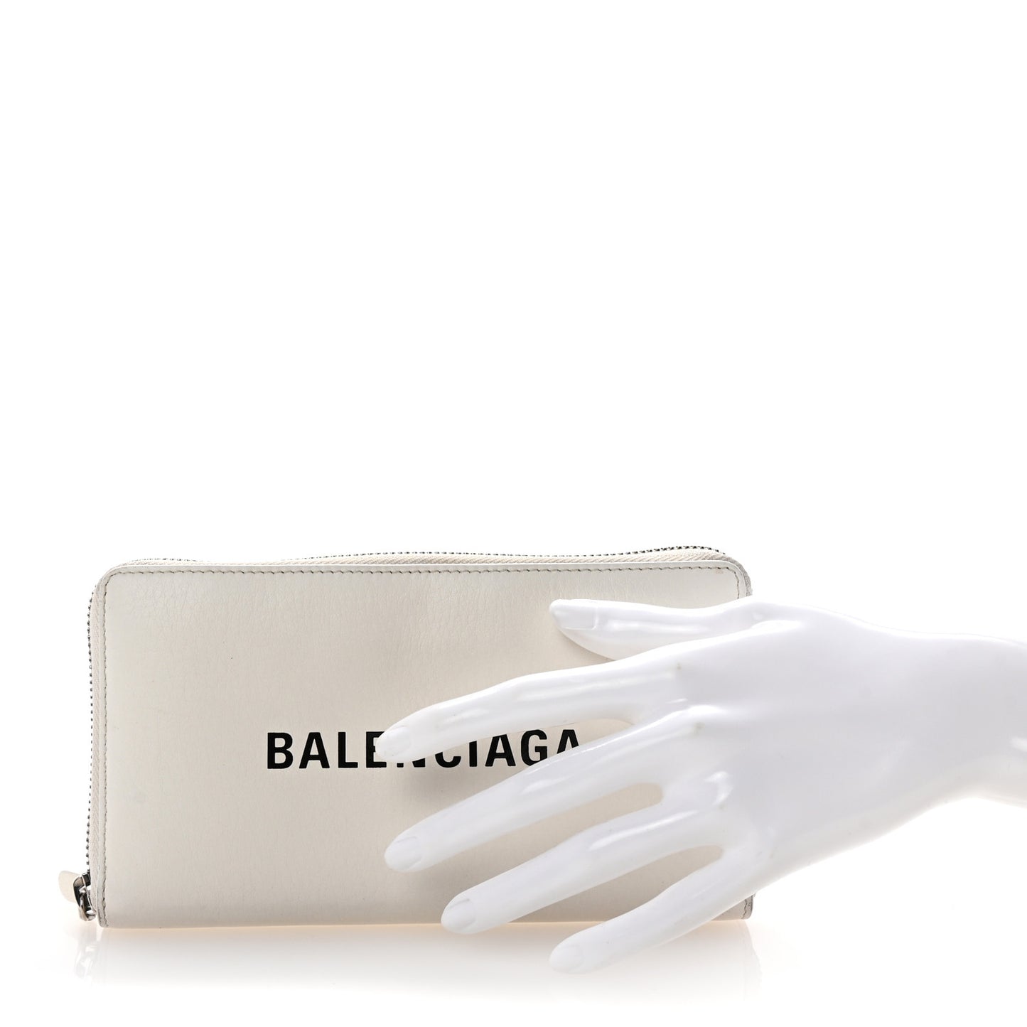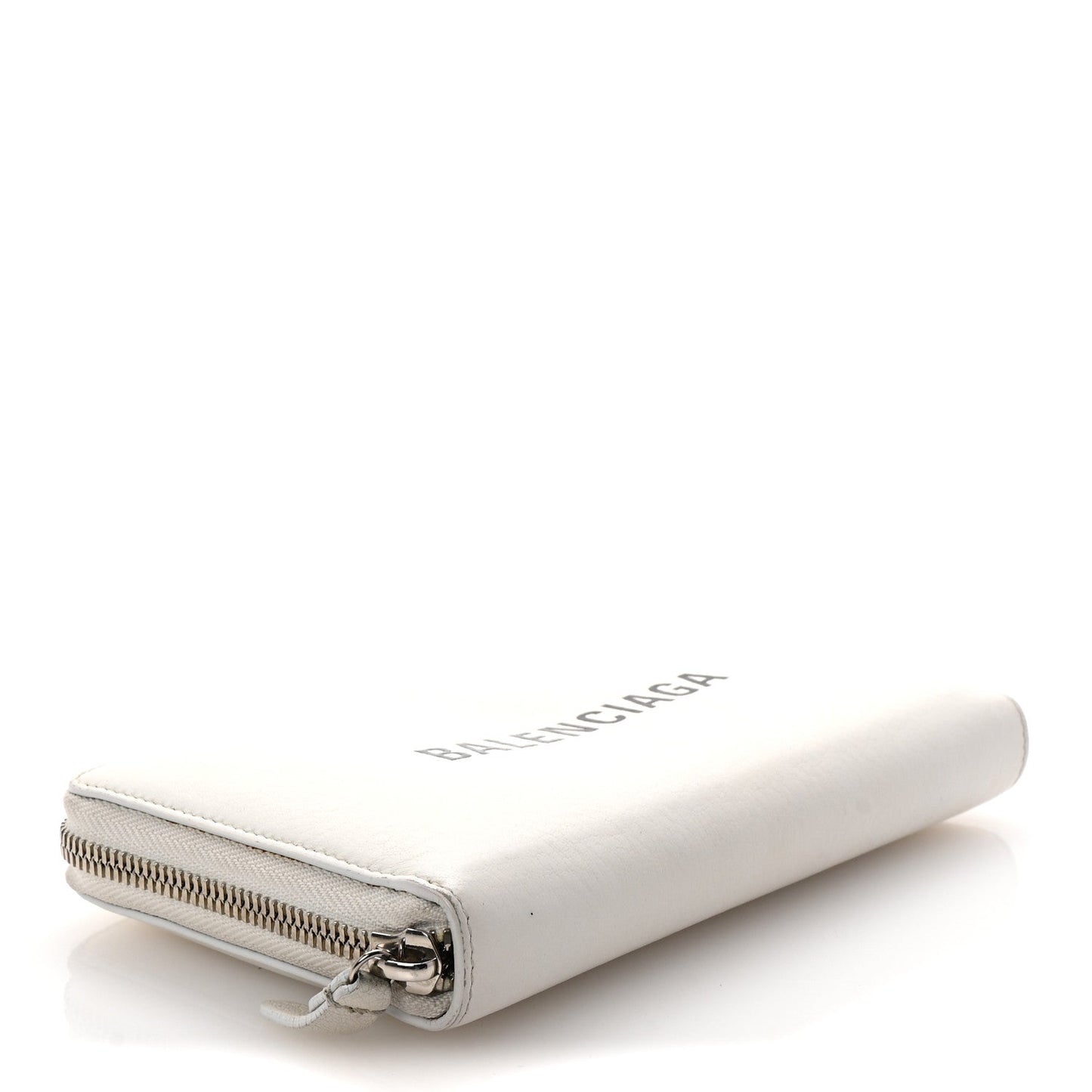 Balenciaga/ Accessories/ Wallets /Balenciaga Calfskin Logo Everyday Continental Zip Around Wallet White