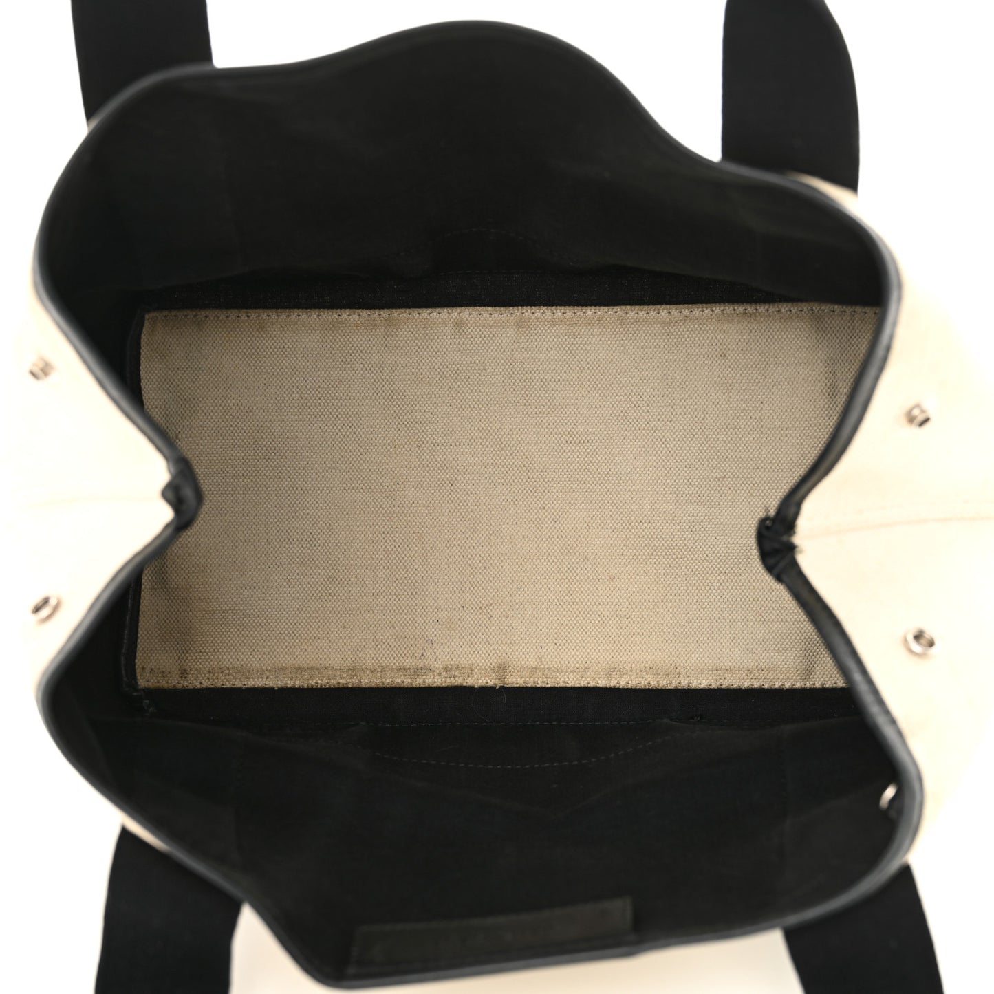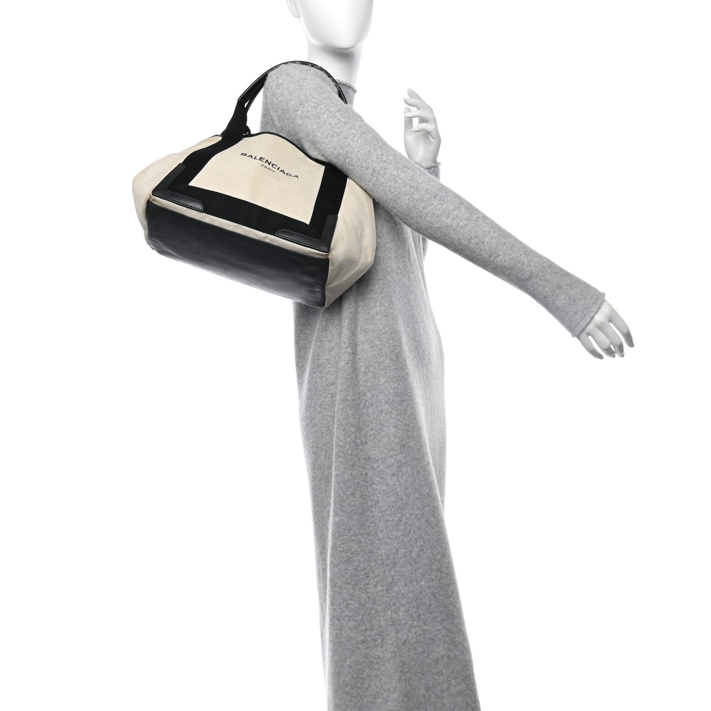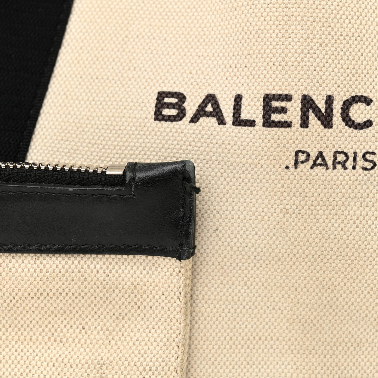 Balenciaga/ Bags/ Totes /Balenciaga Cotton Canvas Satin Calfskin S Navy Cabas Natural Black