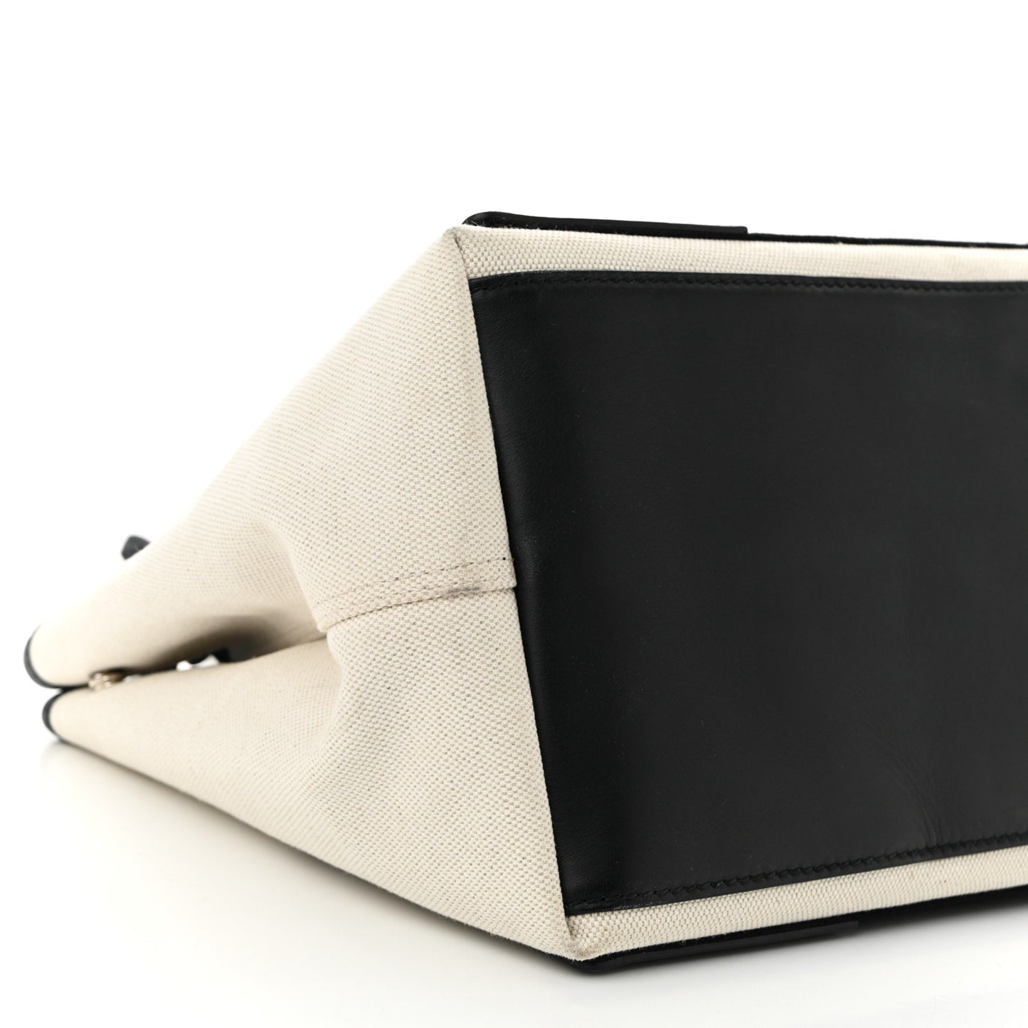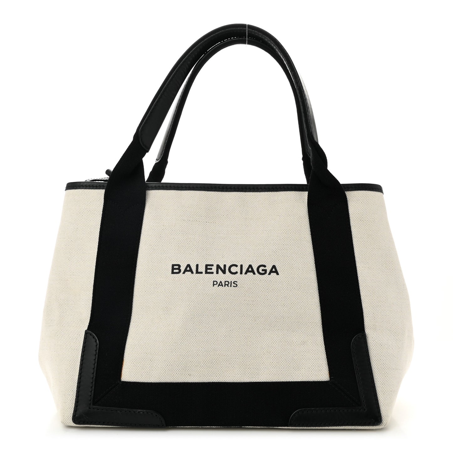 Balenciaga/ Bags/ Shoulder Bags /Balenciaga Cotton Canvas Satin Calfskin S Navy Cabas Natural Black
