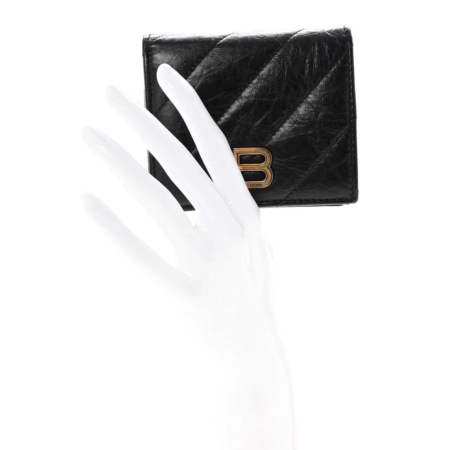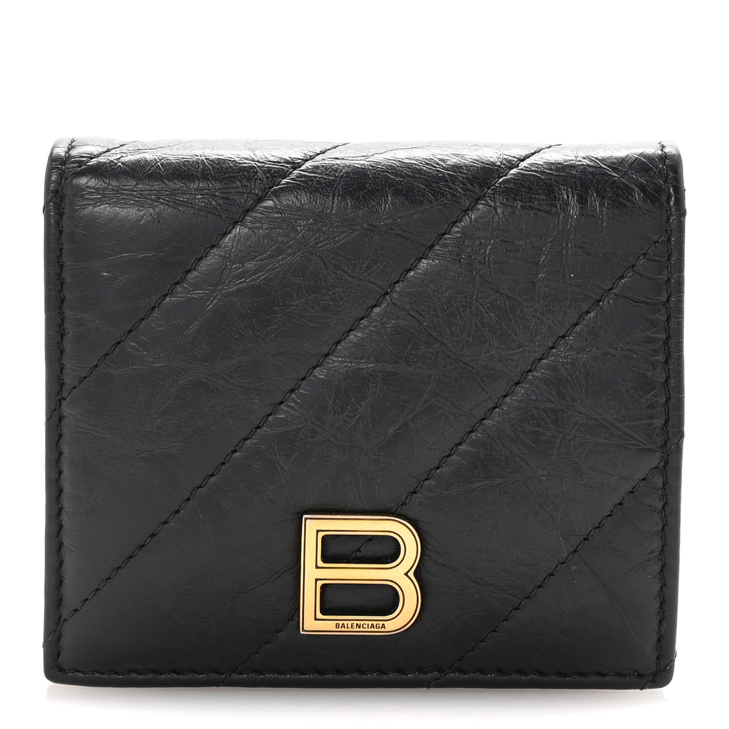 Balenciaga/ Accessories/ Wallets /Balenciaga Crushed Calfskin Quilted B Flap Coin Card Holder Black