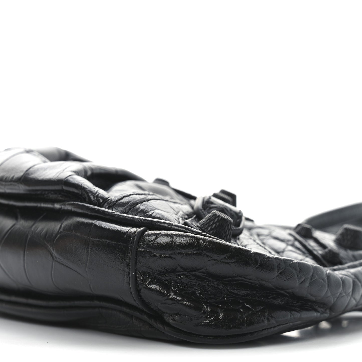 Balenciaga/ Bags/ Shoulder Bags /Balenciaga Extra Supple Calfskin Crocodile Embossed Le Cagole Mini Purse With Chain Black