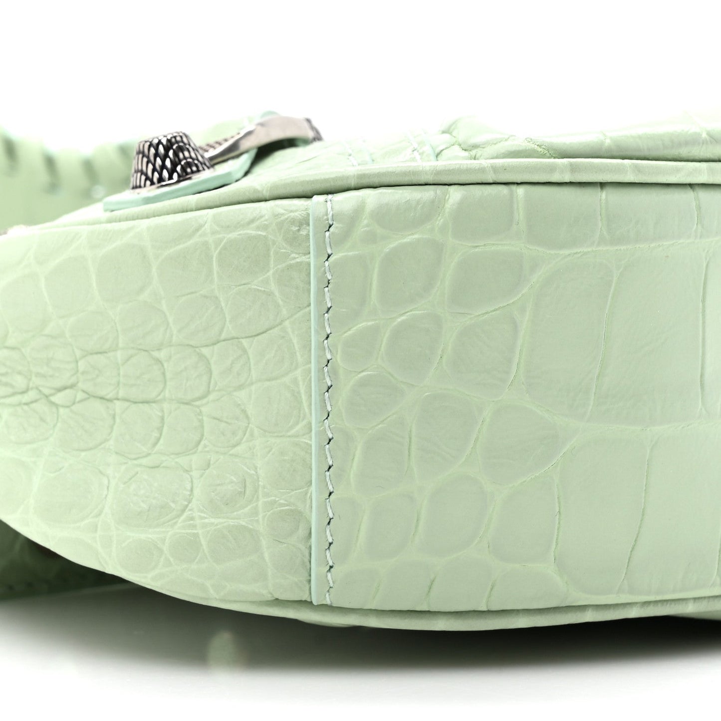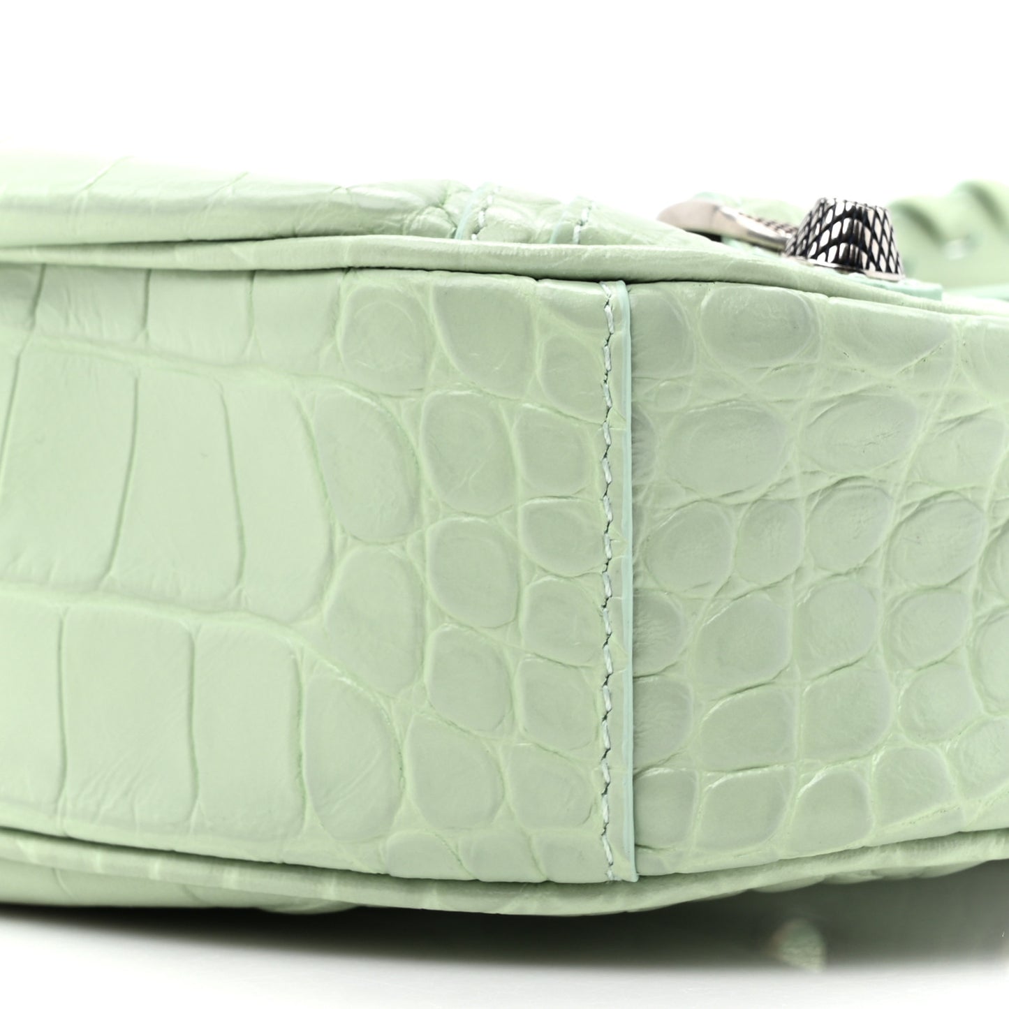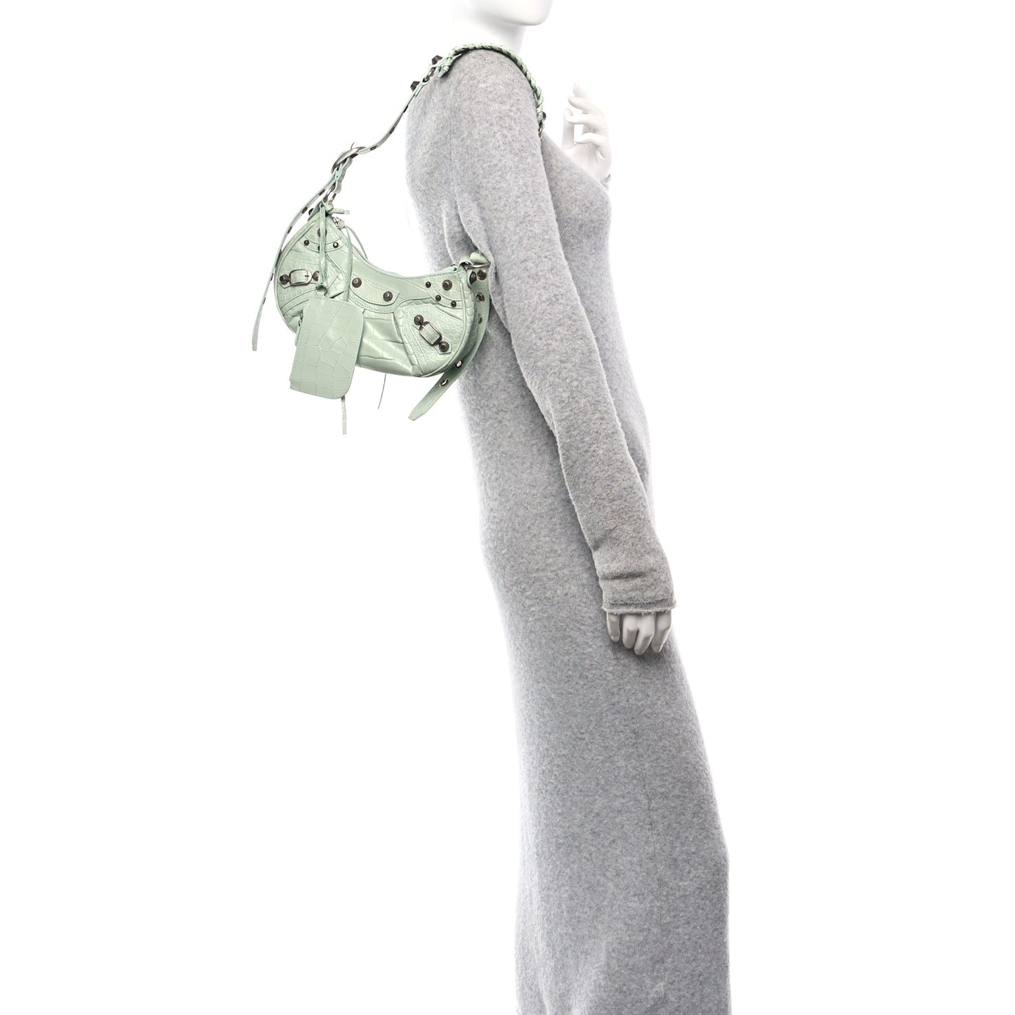 Balenciaga/ Bags/ Shoulder Bags /Balenciaga Extra Supple Calfskin Crocodile Embossed Le Cagole Shoulder Bag XS Light Green