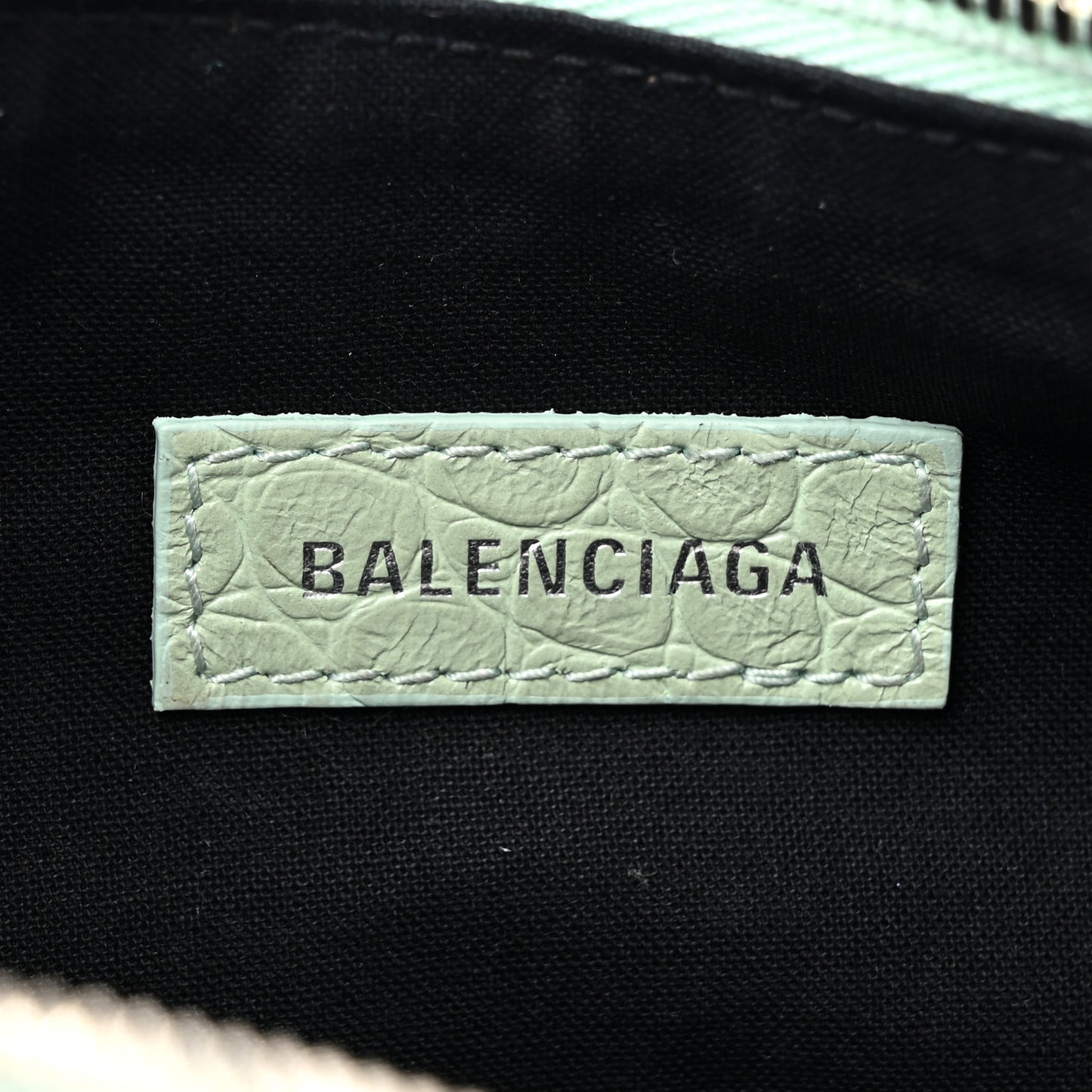 Balenciaga/ Bags/ Shoulder Bags /Balenciaga Extra Supple Calfskin Crocodile Embossed Le Cagole Shoulder Bag XS Light Green