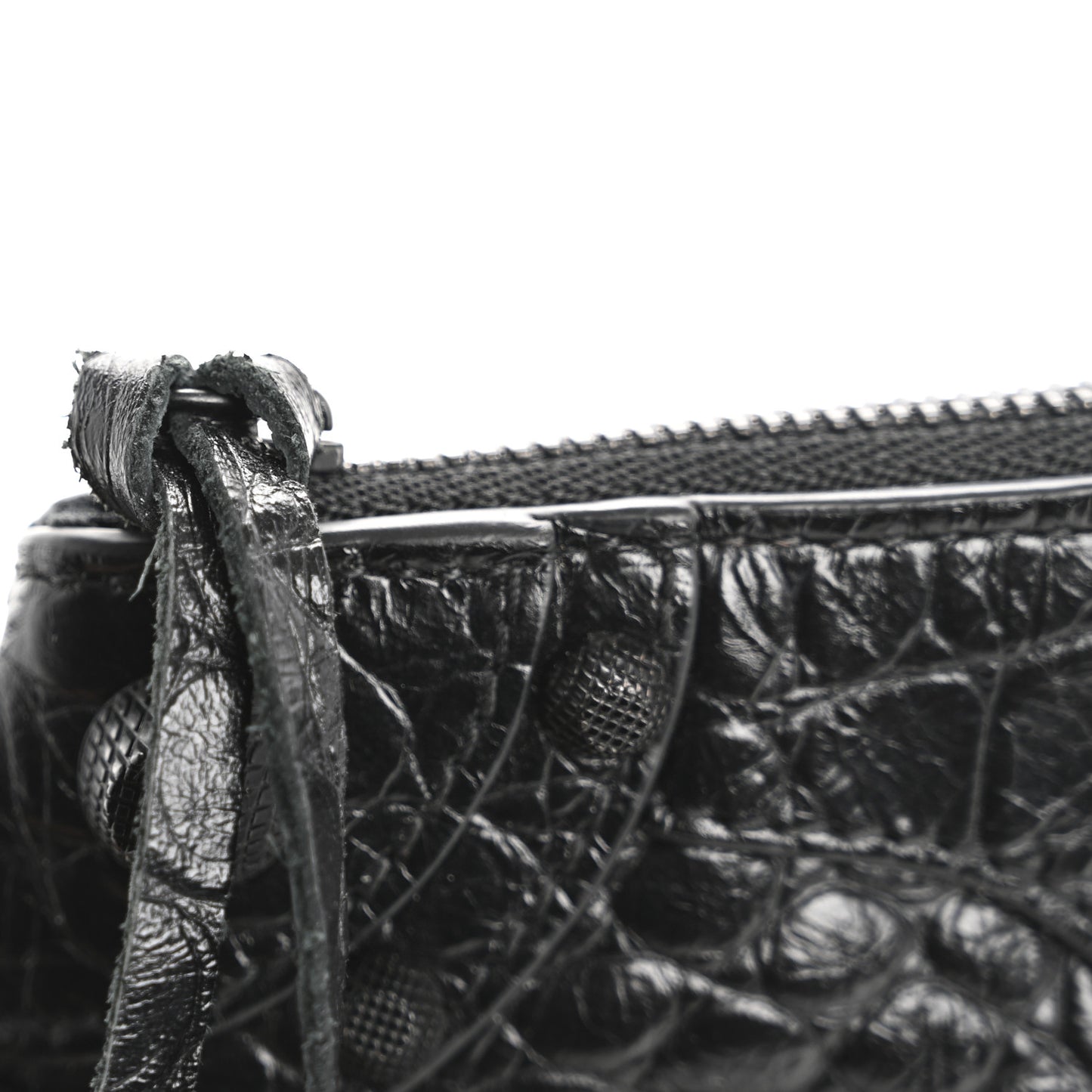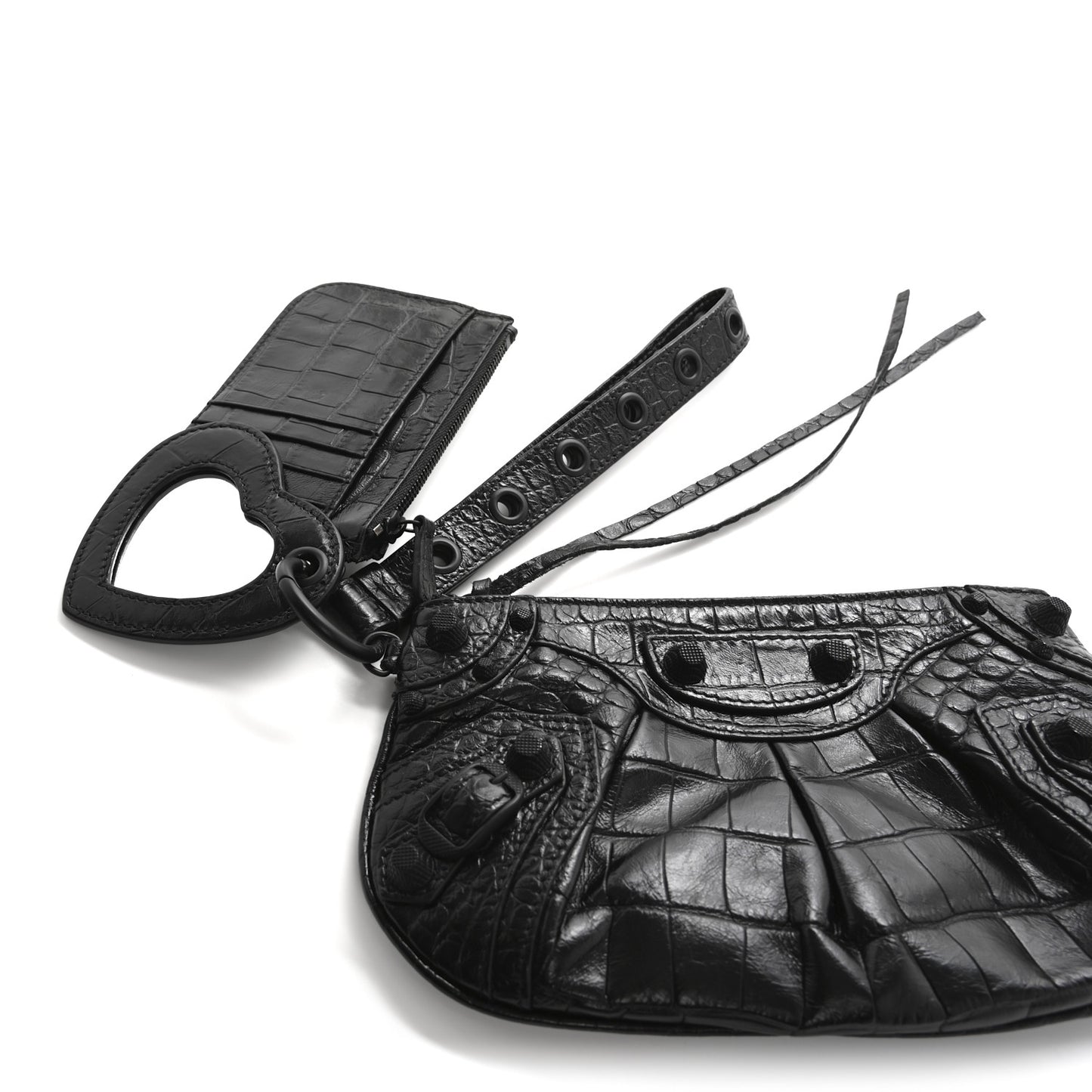 Balenciaga/ Bags/ Accessories /Balenciaga Extra Supple Calfskin Crocodile Embossed Monochrome Mini Le Cagole Multi Pouch Black