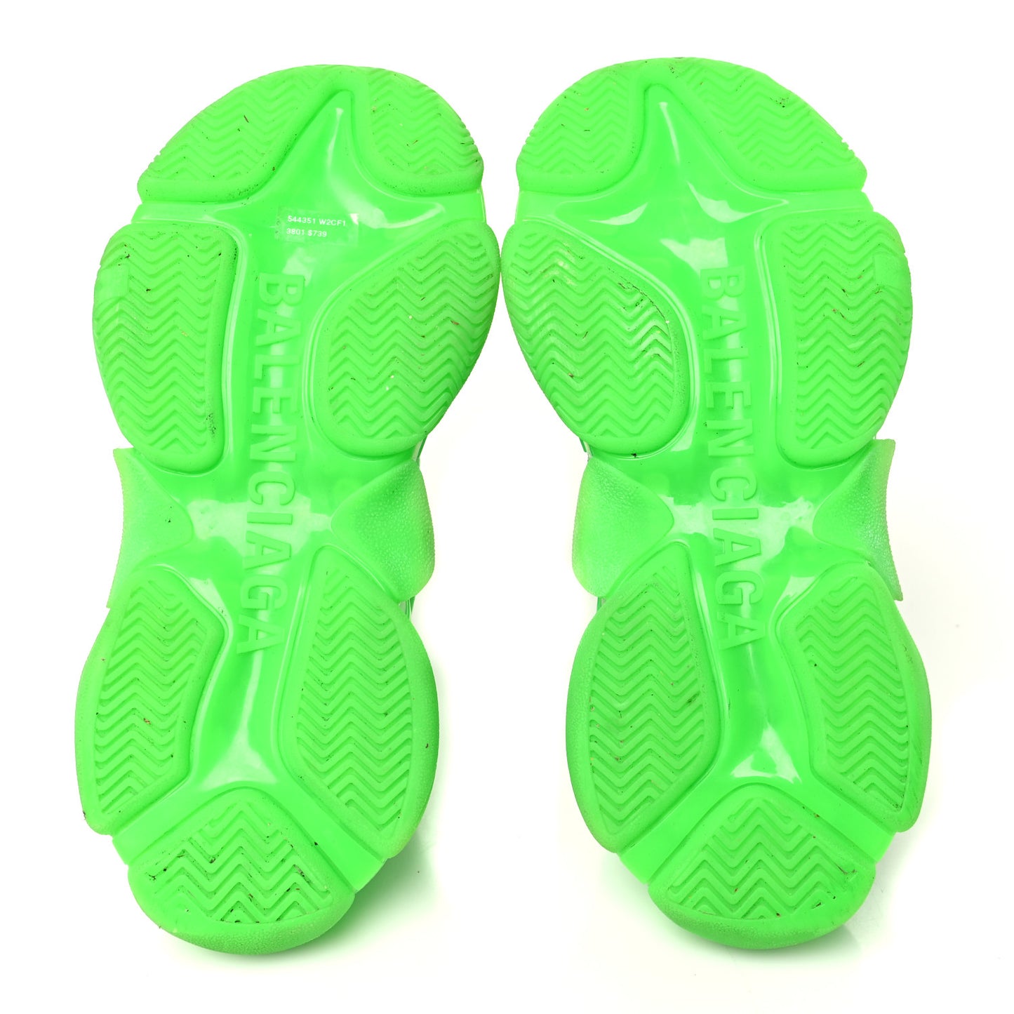 This is an authentic pair of BALENCIAGA Fabric Mesh Clear Sole Womens Triple S Sneakers in size 36 in Fluo Green. These sneakers feature a nylon mesh upper with green rubber trim on the exterior. They feature green rubber soles.Follow this item for alerts. Balenciaga is a registered trademark of Balenciaga. FASHIONPHILE is not affiliated with Balenciaga.