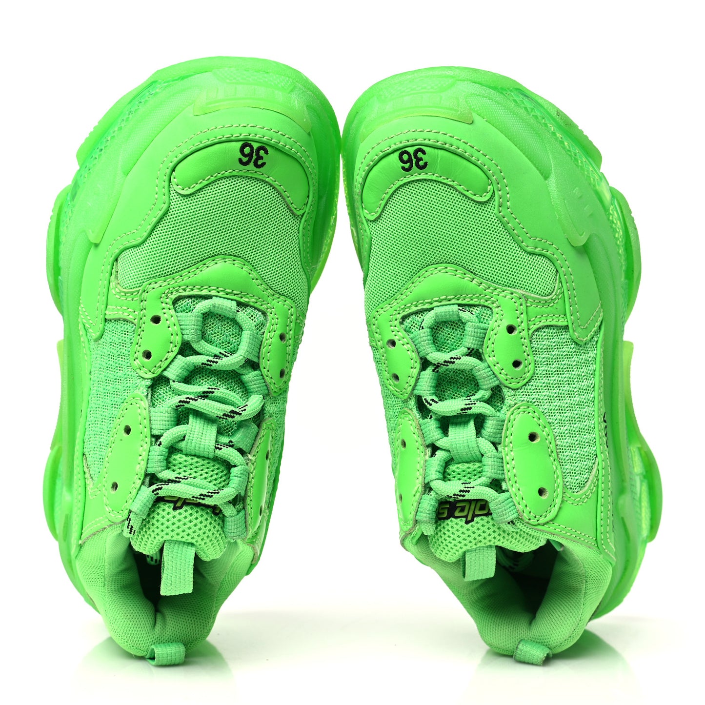 Balenciaga/ Accessories/ Shoes /Balenciaga Fabric Mesh Clear Sole Womens Triple S Sneakers 36 Fluo Green