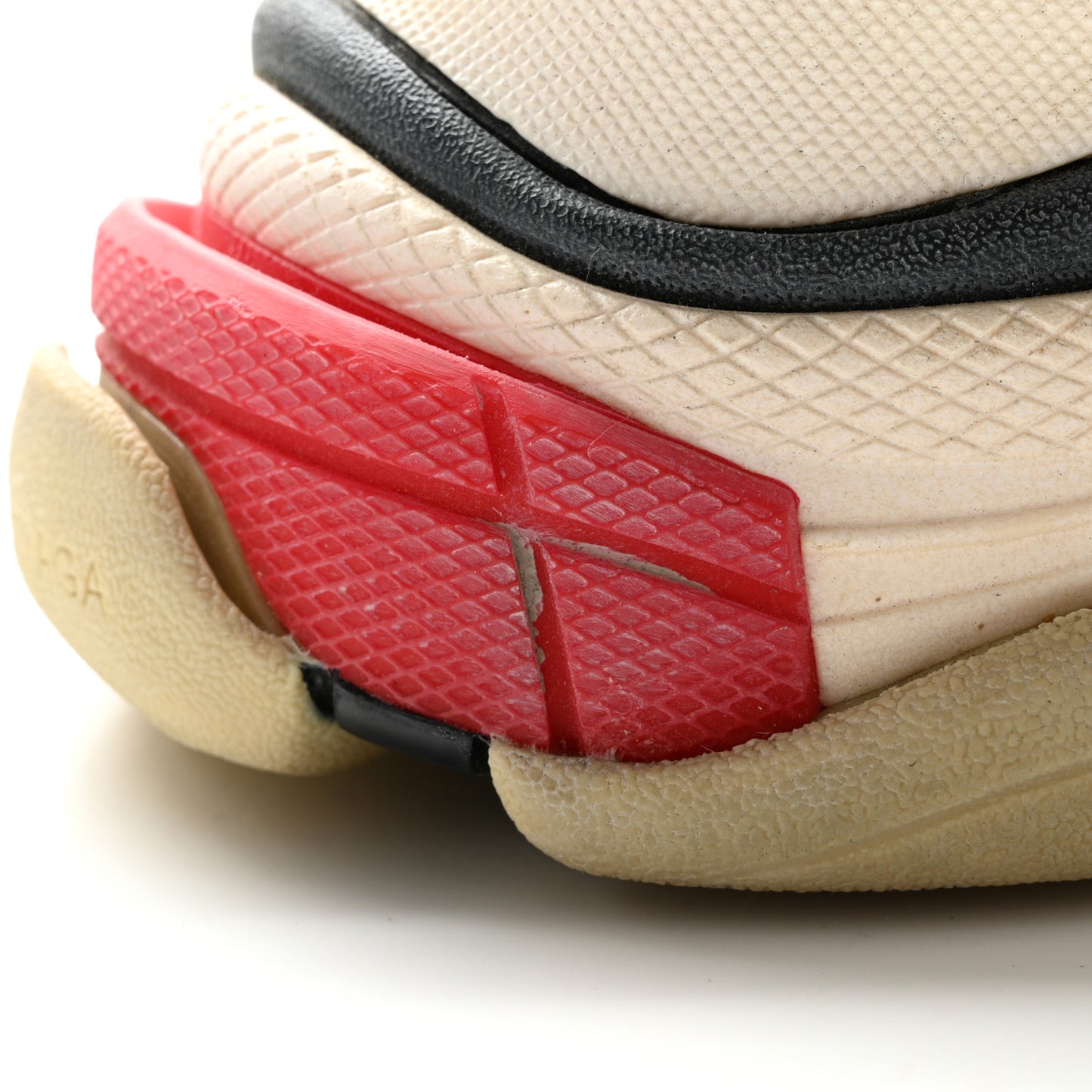 This is an authentic pair of BALENCIAGA Calfskin Mesh Womens Triple S Retro Sneakers size 41 in Black and Red. These sneakers feature a nylon mesh upper with black suede, colorful rubber trim on the exterior, and black and beige rubber soles.Follow this item for alerts. Balenciaga is a registered trademark of Balenciaga. FASHIONPHILE is not affiliated with Balenciaga.