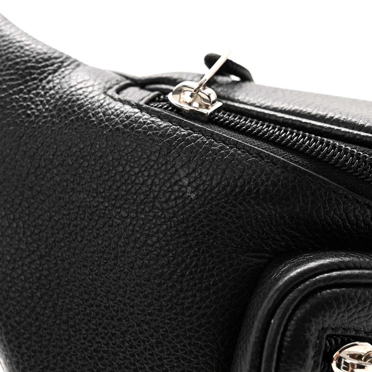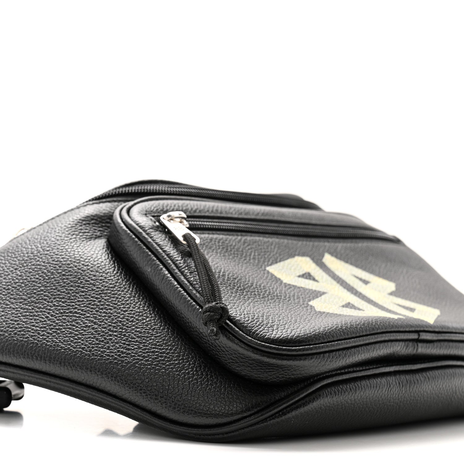 Grained Calfskin Tape Logo Explorer Belt Bag Black White