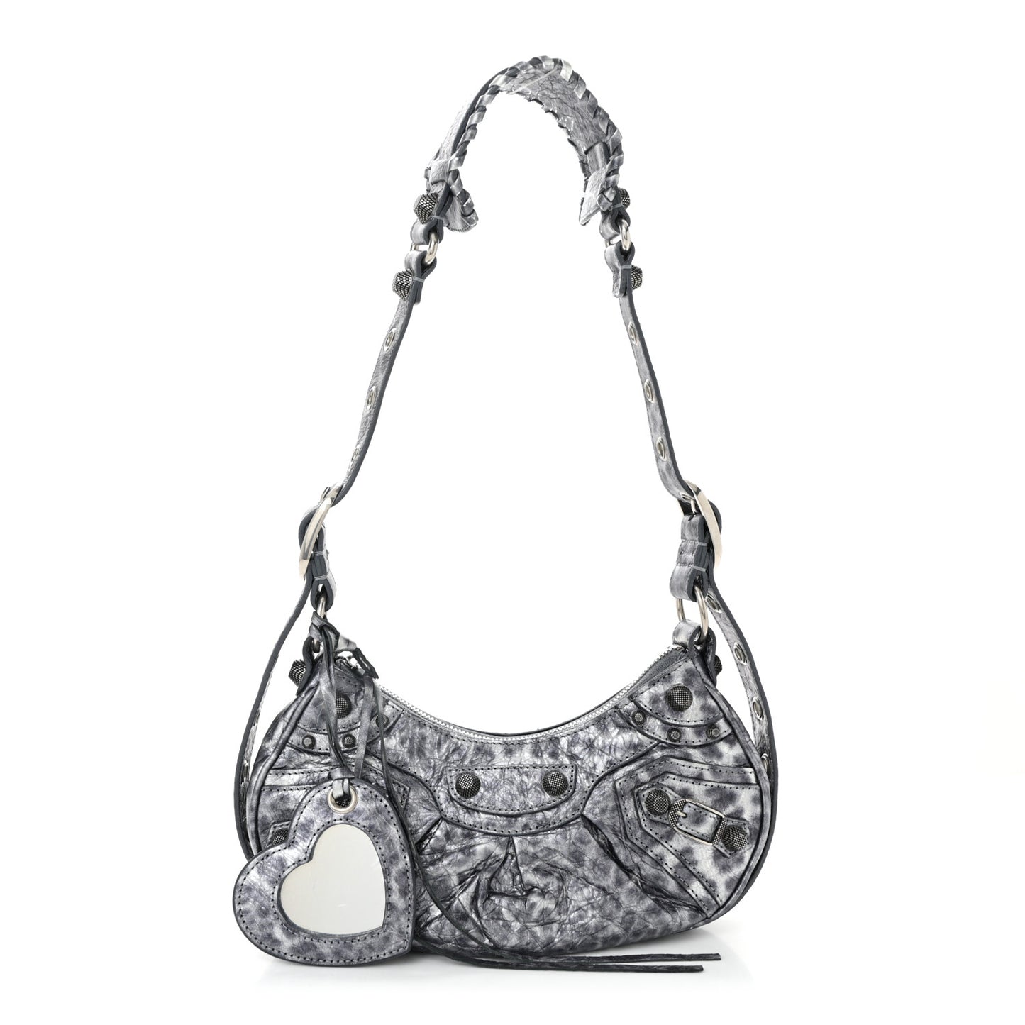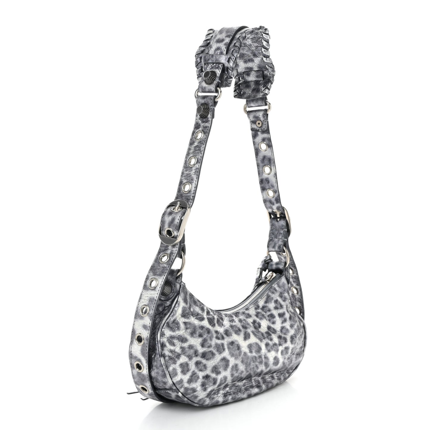 Balenciaga/ Bags/ Shoulder Bags /Balenciaga Metallic Agneau Arena Leopard Le Cagole Shoulder Bag XS Dark Grey