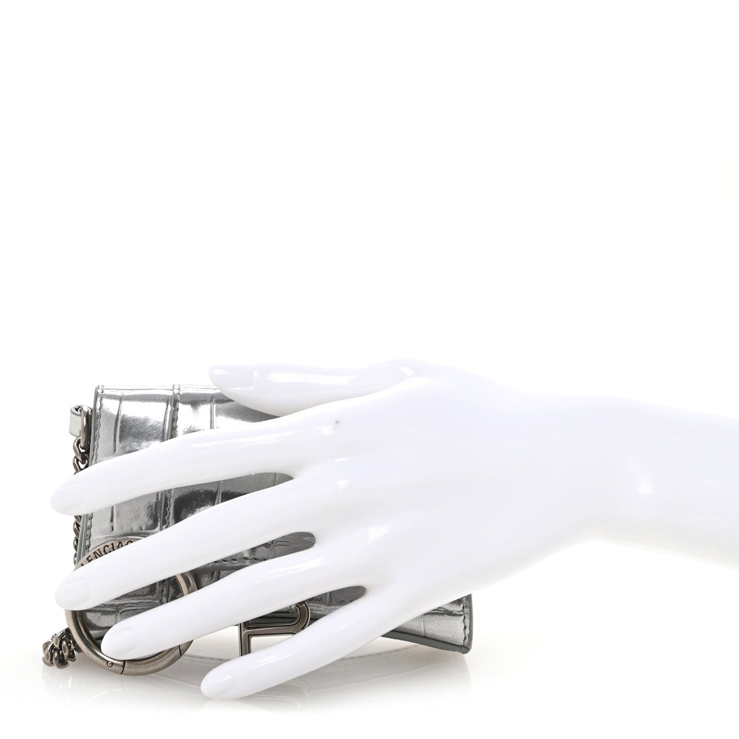 Balenciaga/ Bags/ Accessories /Balenciaga Metallic Calfskin Crocodile Embossed Hourglass Chain Cardholder Silver