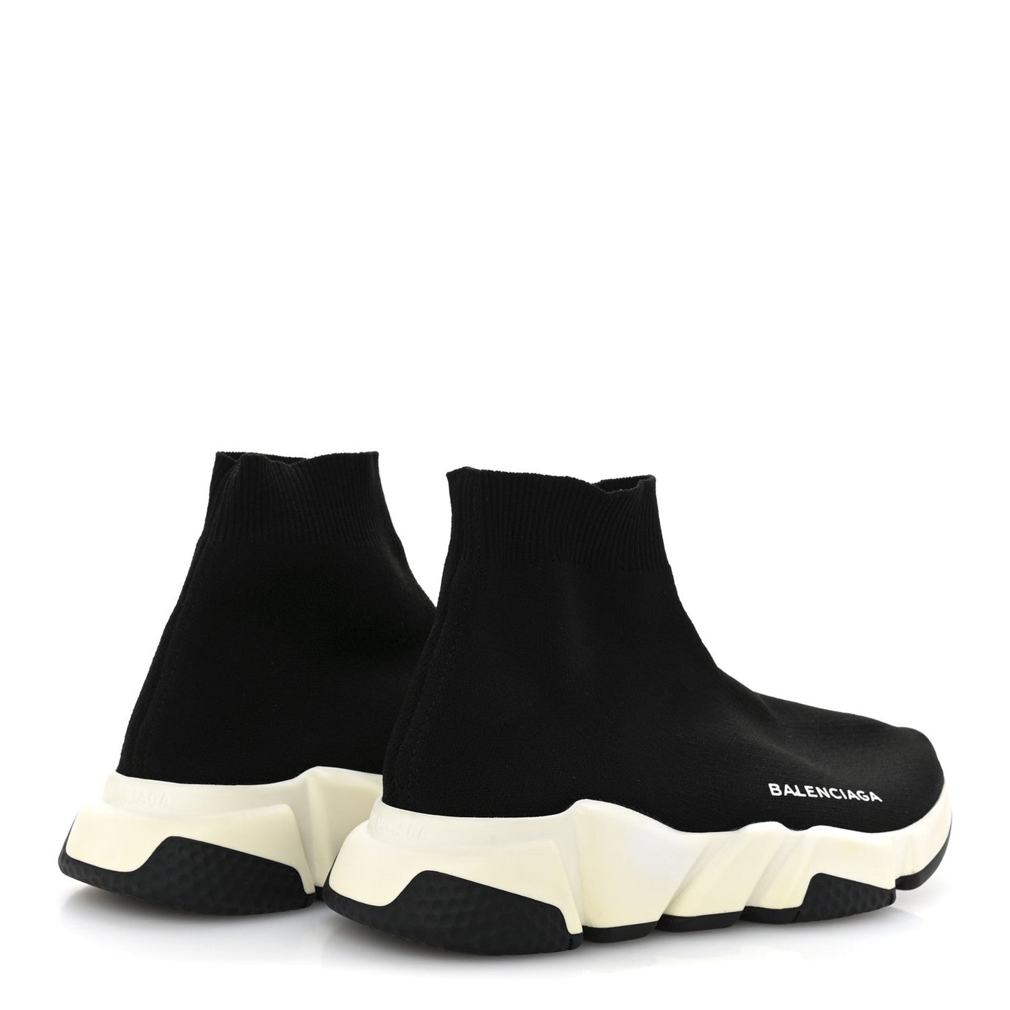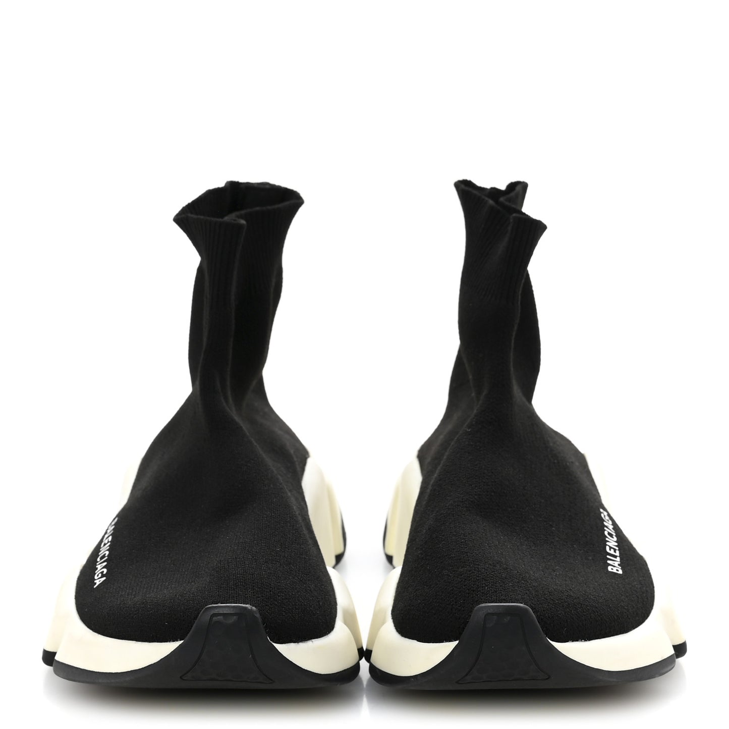 This is an authentic pair of BALENCIAGA Neoprene Knit Womens Speed Sneakers size 35 in Black and White. These sneakers are made of knit material in black. They feature a white Balenciaga logo on the sides, rib-knit heel, memory sole with an embossed logo at heel.Follow this item for alerts. Balenciaga is a registered trademark of Balenciaga. FASHIONPHILE is not affiliated with Balenciaga.