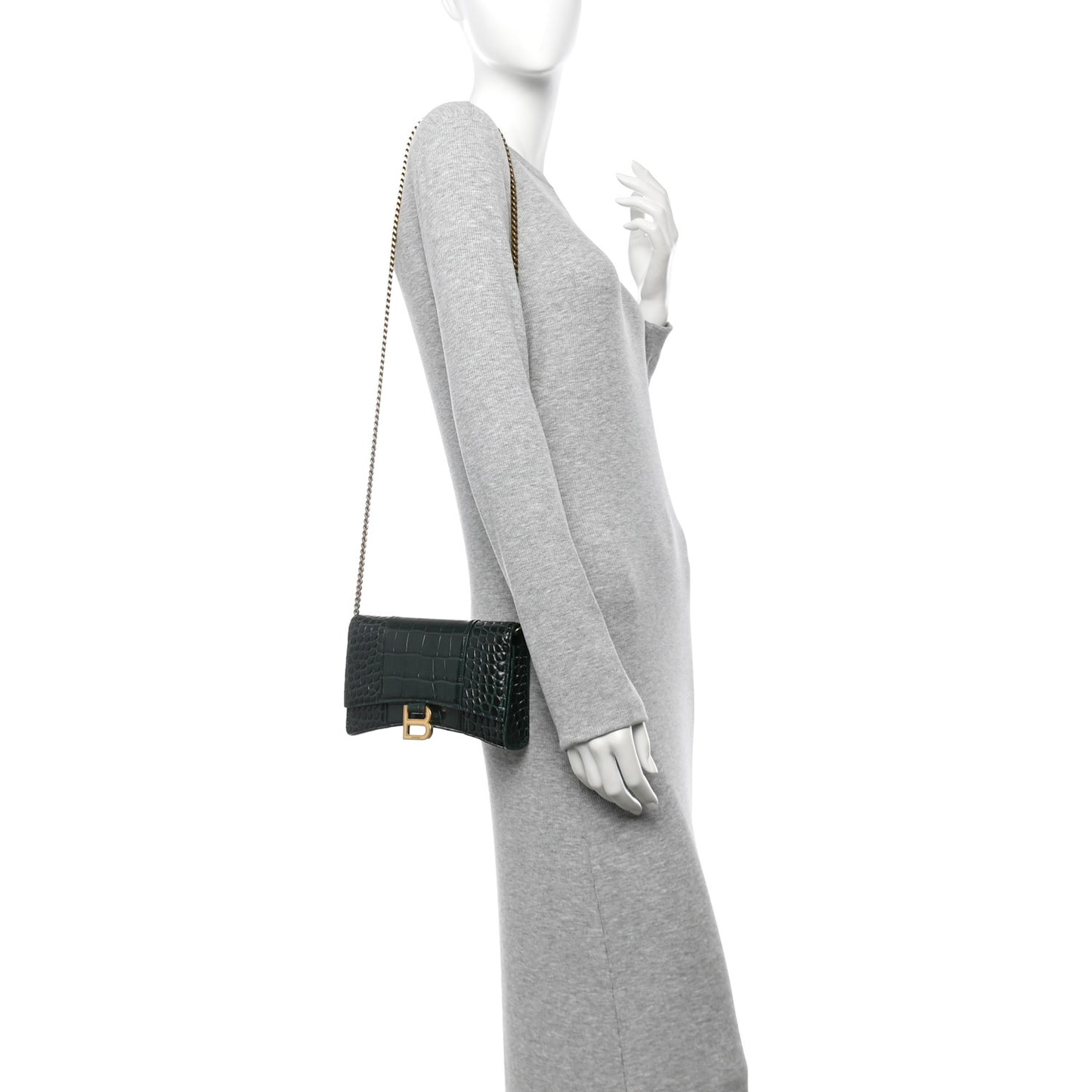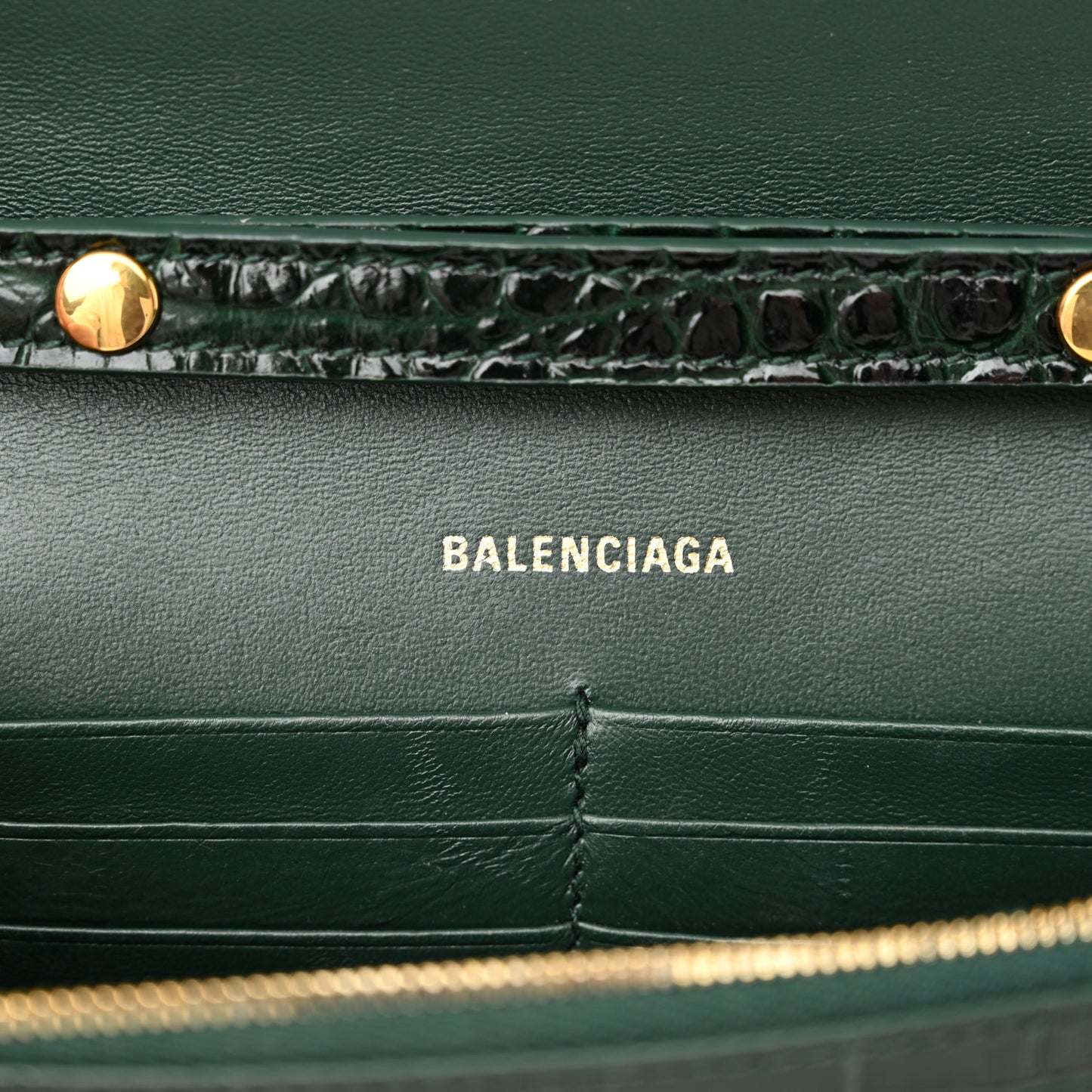 Balenciaga/ Bags/ Clutch & Evening /Balenciaga Shiny Calfskin Crocodile Embossed Hourglass Chain Bag Forest Green