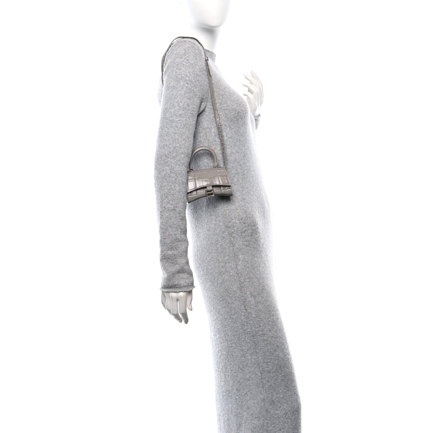 Balenciaga/ Bags/ Shoulder Bags /Balenciaga Shiny Calfskin Crocodile Embossed Hourglass Top Handle Bag Mini Steel Grey