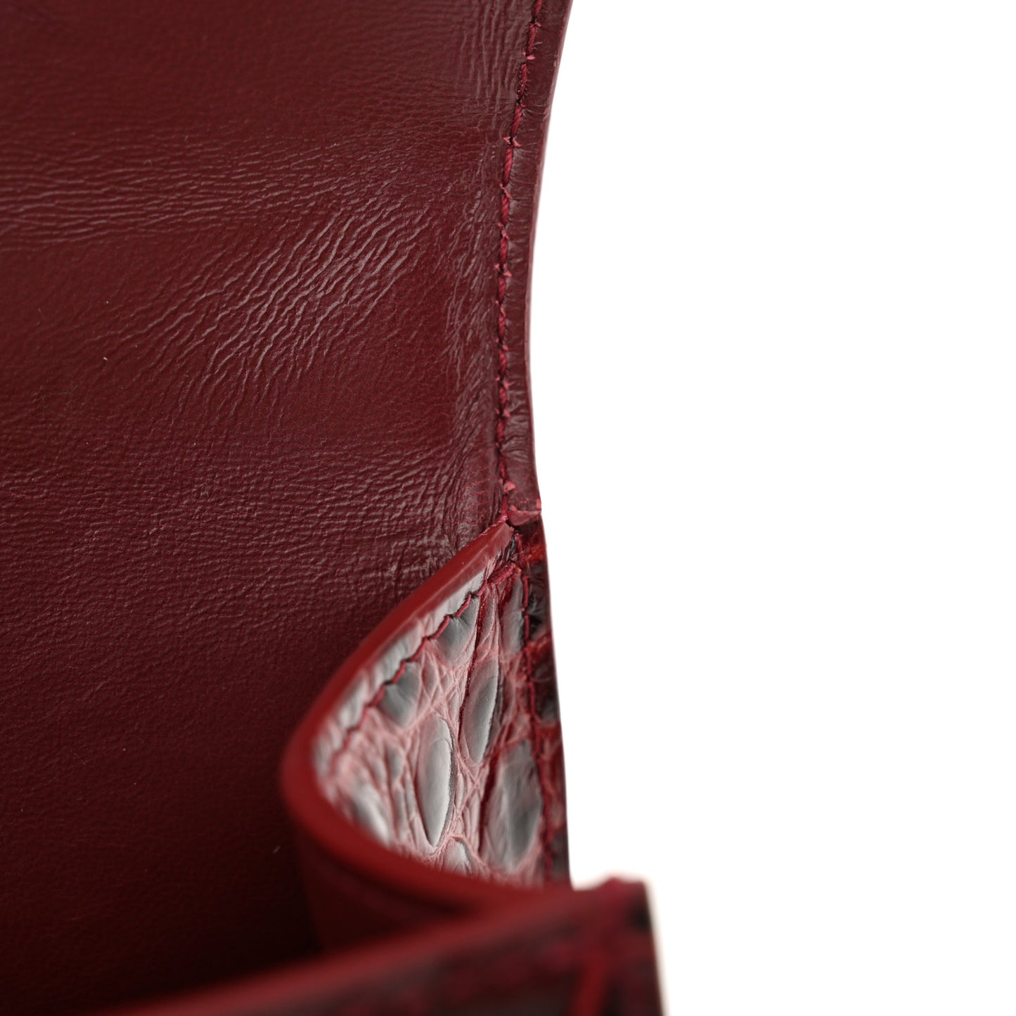 Shiny Calfskin Crocodile Embossed Hourglass Top Handle Bag XS Dark Red