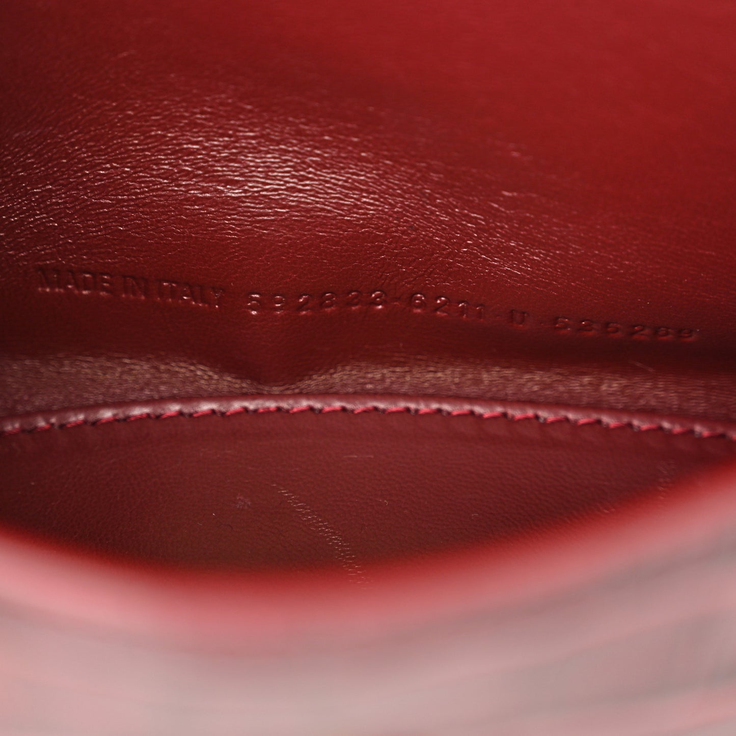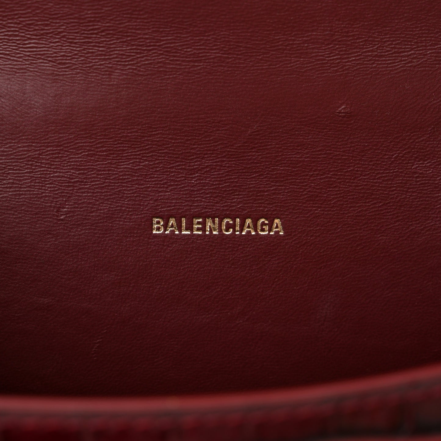 Balenciaga/ Bags/ Shoulder Bags /Balenciaga Shiny Calfskin Crocodile Embossed Hourglass Top Handle Bag XS Dark Red