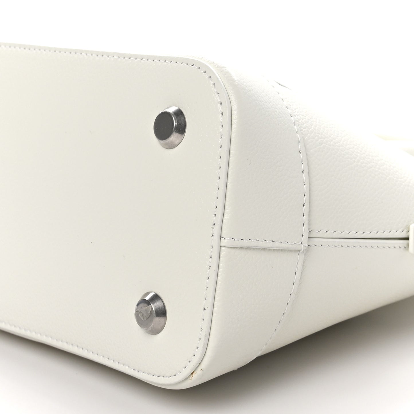 Signature Grained Calfskin Logo S Ville Top Handle Bag White Black