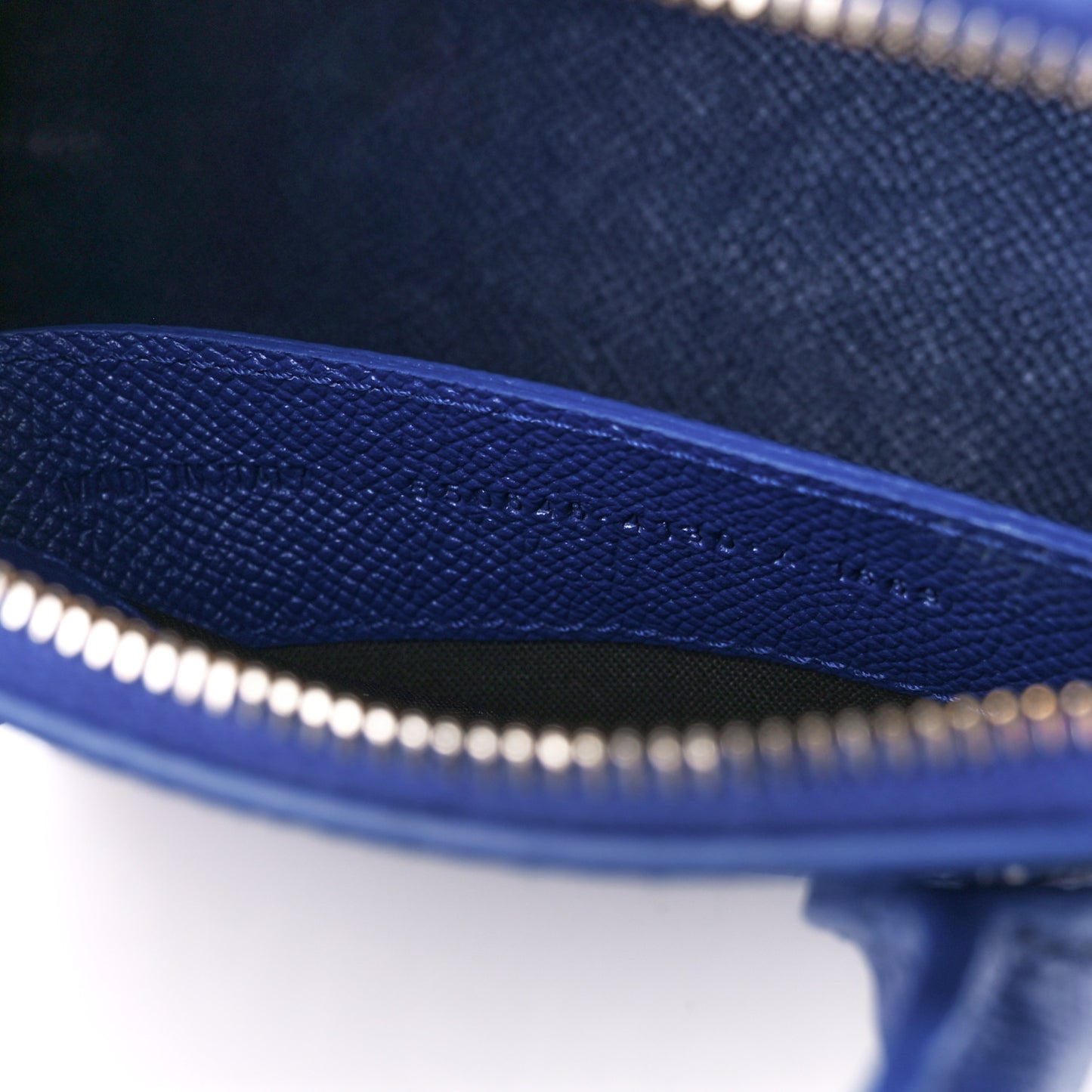 Signature Grained Calfskin Logo XXS Ville Top Handle Bag Bleu Roi White