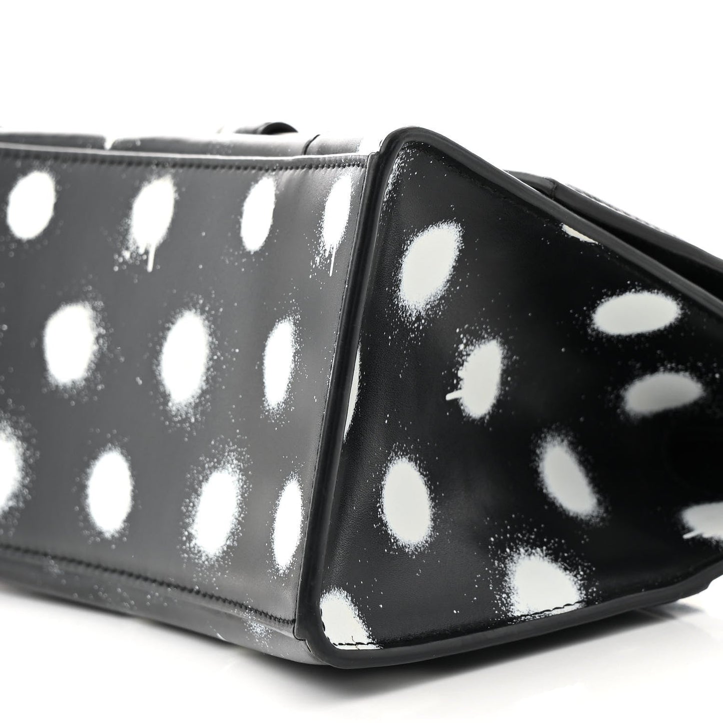 Smooth Calfskin Spray Polka Dot Small Hourglass Top Handle Bag Black White