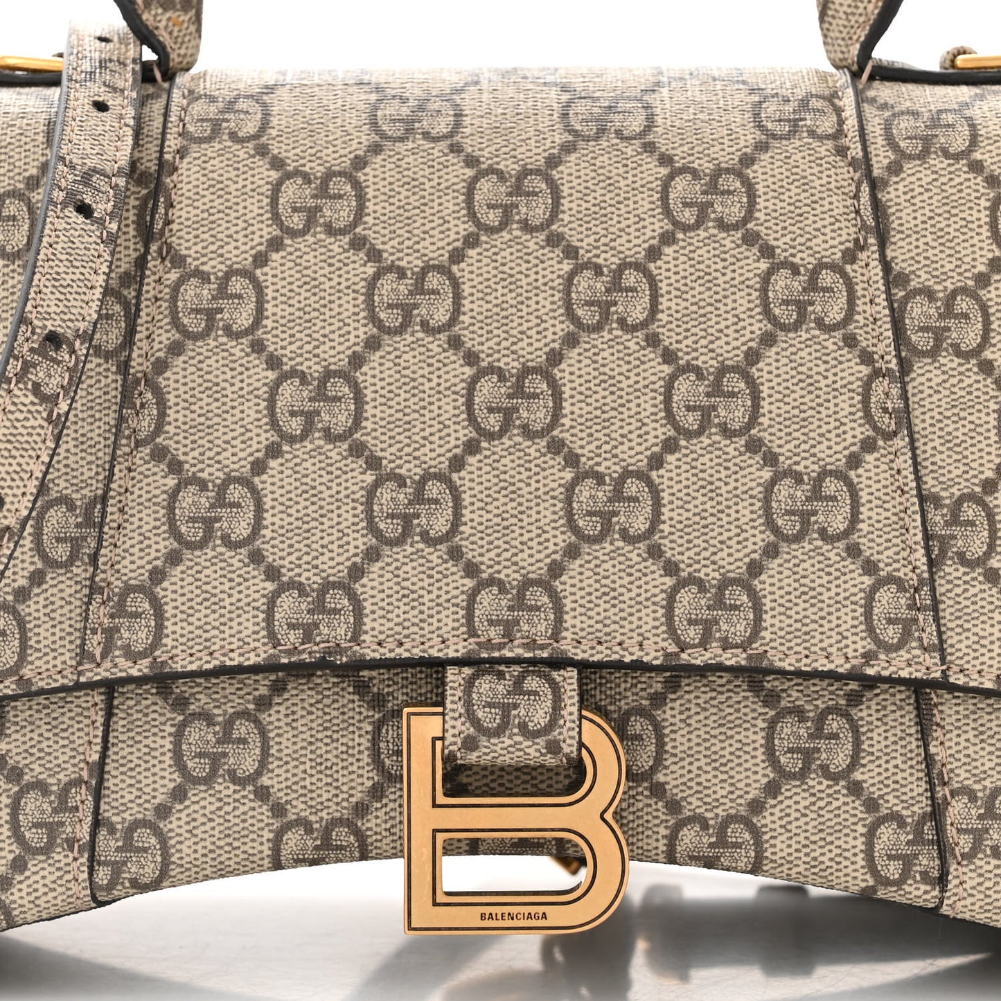 Balenciaga/ Bags/ Shoulder Bags /Balenciaga X GUCCI GG Supreme Monogram Small Hourglass Top Handle Bag Beige Ebony