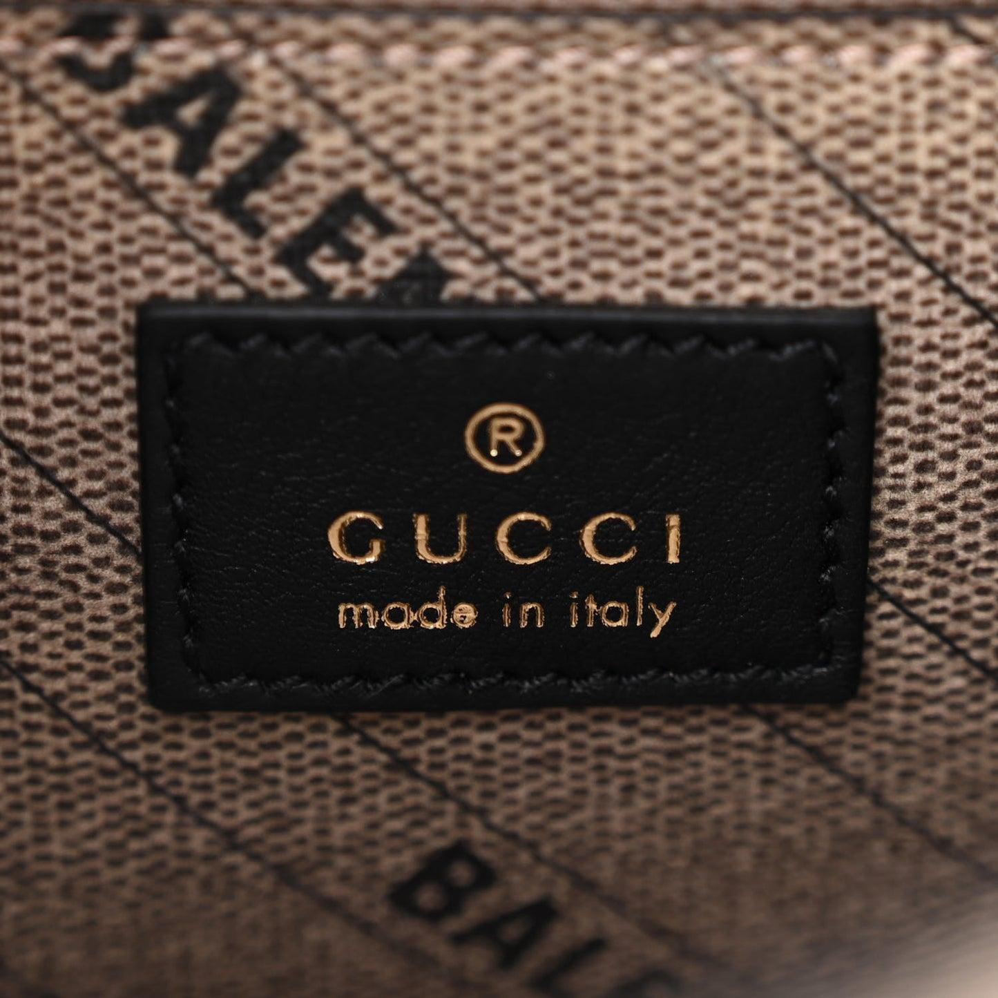 This is an authentic BALENCIAGA X GUCCI GG Supreme Monogram Small Hourglass Top Handle Bag in Beige and Ebony. This stylish petite handbag is beautifully crafted with the Gucci monogram on coated canvas. It features a top handle and an optional shoulder strap. This bag also features the signature Balenciaga B charm, gold hardware and slip pocket at back. The front flap opens to a beige Balenciaga monogrammed coated canvas interior.Follow this item for alerts. Balenciaga is a registered trademark of Balenciaga. FASHIONPHILE is not affiliated with Balenciaga.