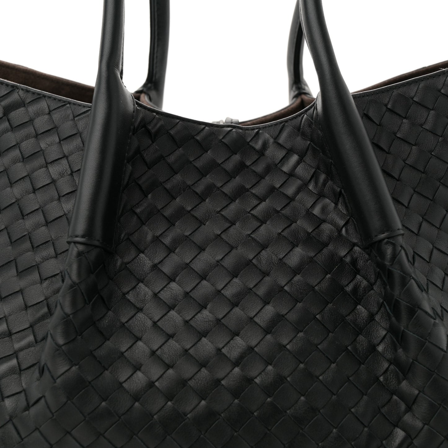 Bottega Veneta/ Bags/ Handbags /Bottega Veneta Calfskin Intrecciato Pinacoteca Reversible Tote Black Fondant