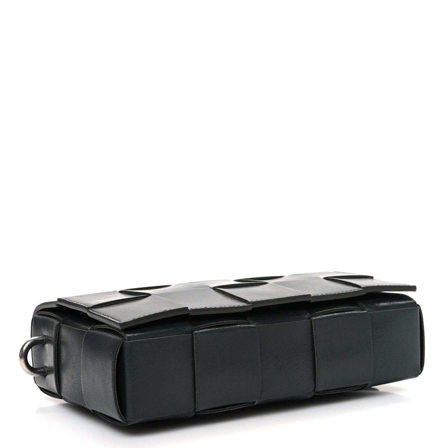 Calfskin Maxi Intreccio Cassette With Strap Bag Dark Green