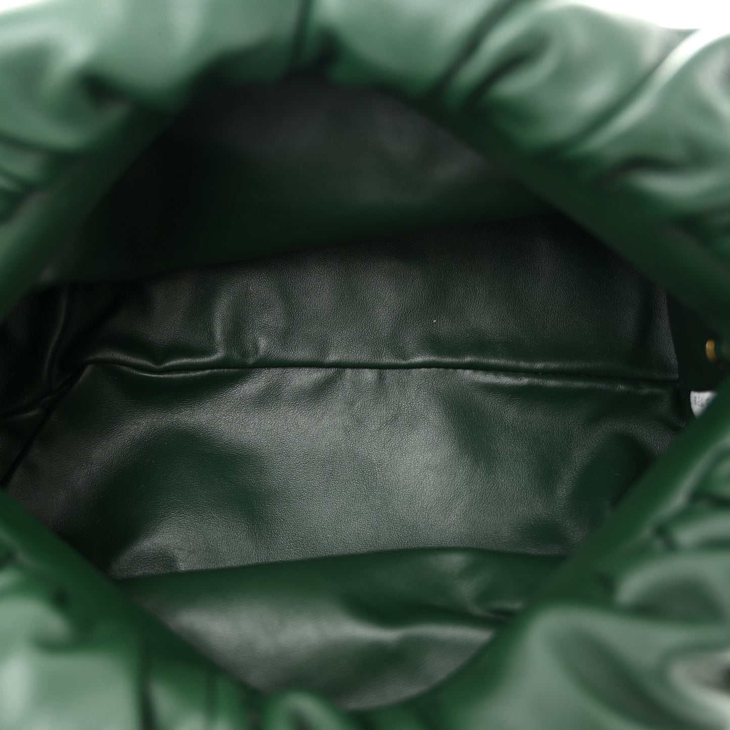 This is an authentic BOTTEGA VENETA Calfskin The Pouch Chain in Raintree. This ultra-popular shoulder bag is crafted of supple calfskin leather in green. The bag features a ruched leather magnetic frame top that opens to a matching leather interior and a thick polished gold chain strap.Follow this item for alerts. Bottega Veneta is a registered trademark of Bottega Veneta. FASHIONPHILE is not affiliated with Bottega Veneta.