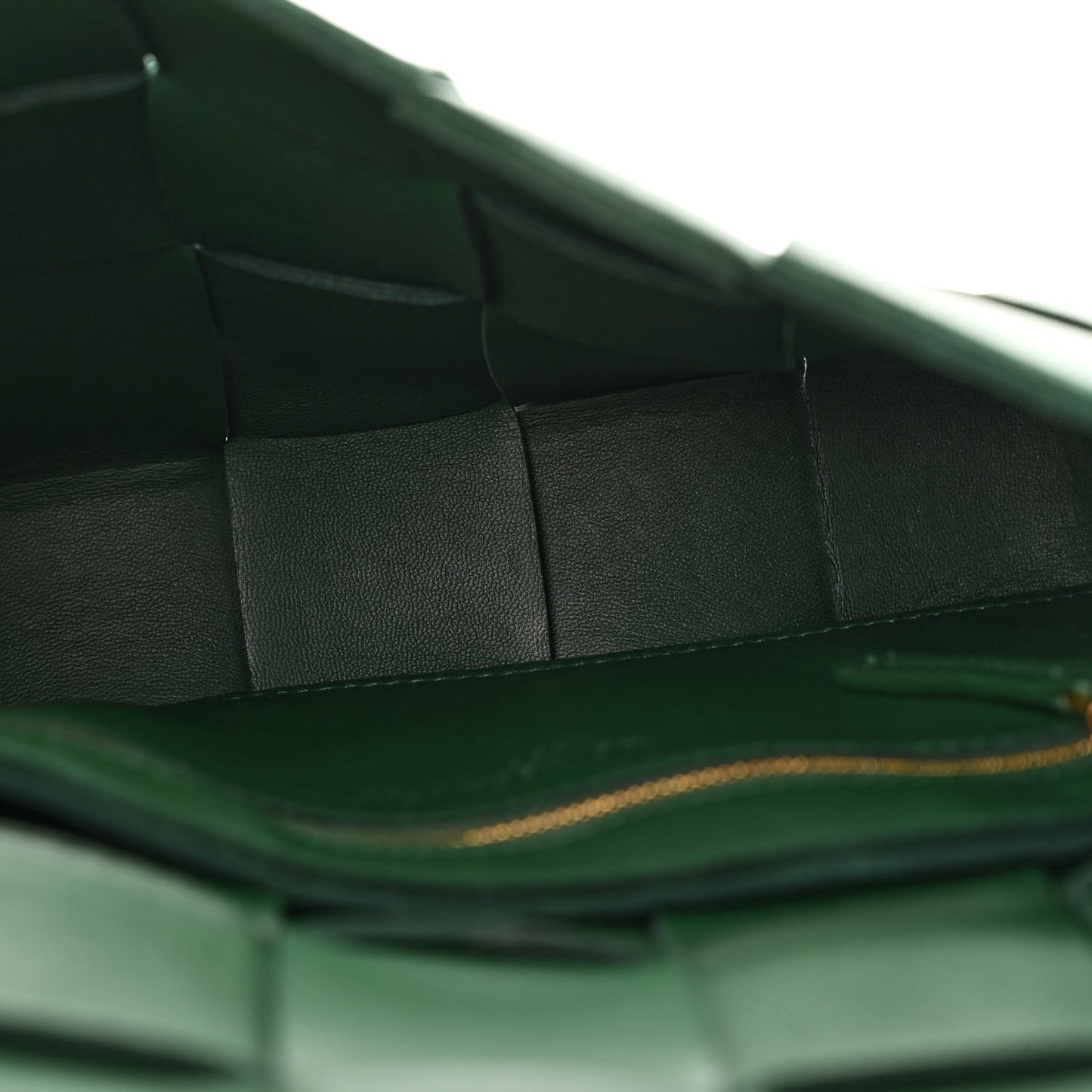 This is an authentic BOTTEGA VENETA Lambskin Maxi Intrecciato Cassette Crossbody Bag Raintree. This stylish shoulder bag is crafted of woven nappa leather in green. The bag features an adjustable leather shoulder strap and opens to a matching leather interior with a hanging zipper pocket.Follow this item for alerts. Bottega Veneta is a registered trademark of Bottega Veneta. FASHIONPHILE is not affiliated with Bottega Veneta.