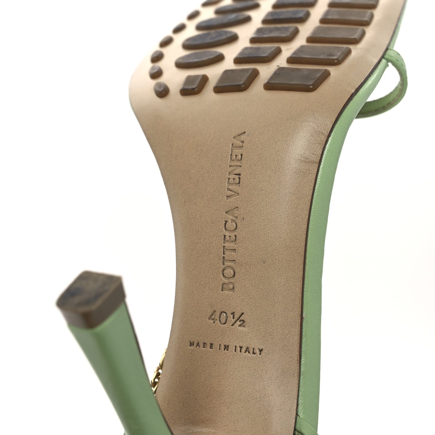 This is an authentic pair of BOTTEGA VENETA Lambskin Stretch Chain Strap 90mm Sandals size 40.5 in Pistachio. These stylish sandals are crafted of smooth leather and feature a squared toe, and a 4-inch heel.Follow this item for alerts. Bottega Veneta is a registered trademark of Bottega Veneta. FASHIONPHILE is not affiliated with Bottega Veneta.