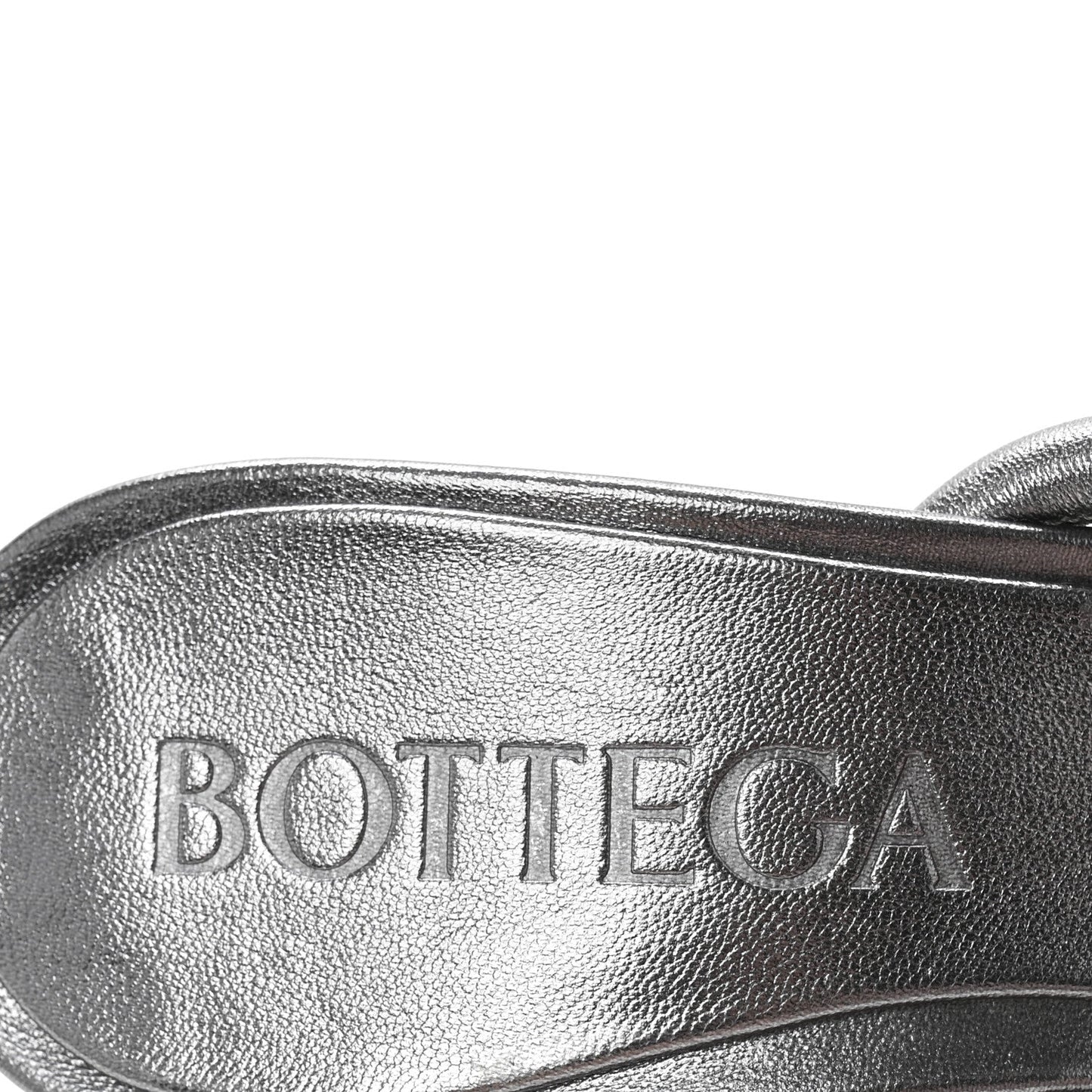 These are authentic BOTTEGA VENETA Metallic Blink Knot Mule Sandals 36.5 in Silver. These stunning sandals are crafted of metallic lambskin leather in silver and feature an elongated square open toe with a 3.5-inch heel.Follow this item for alerts. Bottega Veneta is a registered trademark of Bottega Veneta. FASHIONPHILE is not affiliated with Bottega Veneta.
