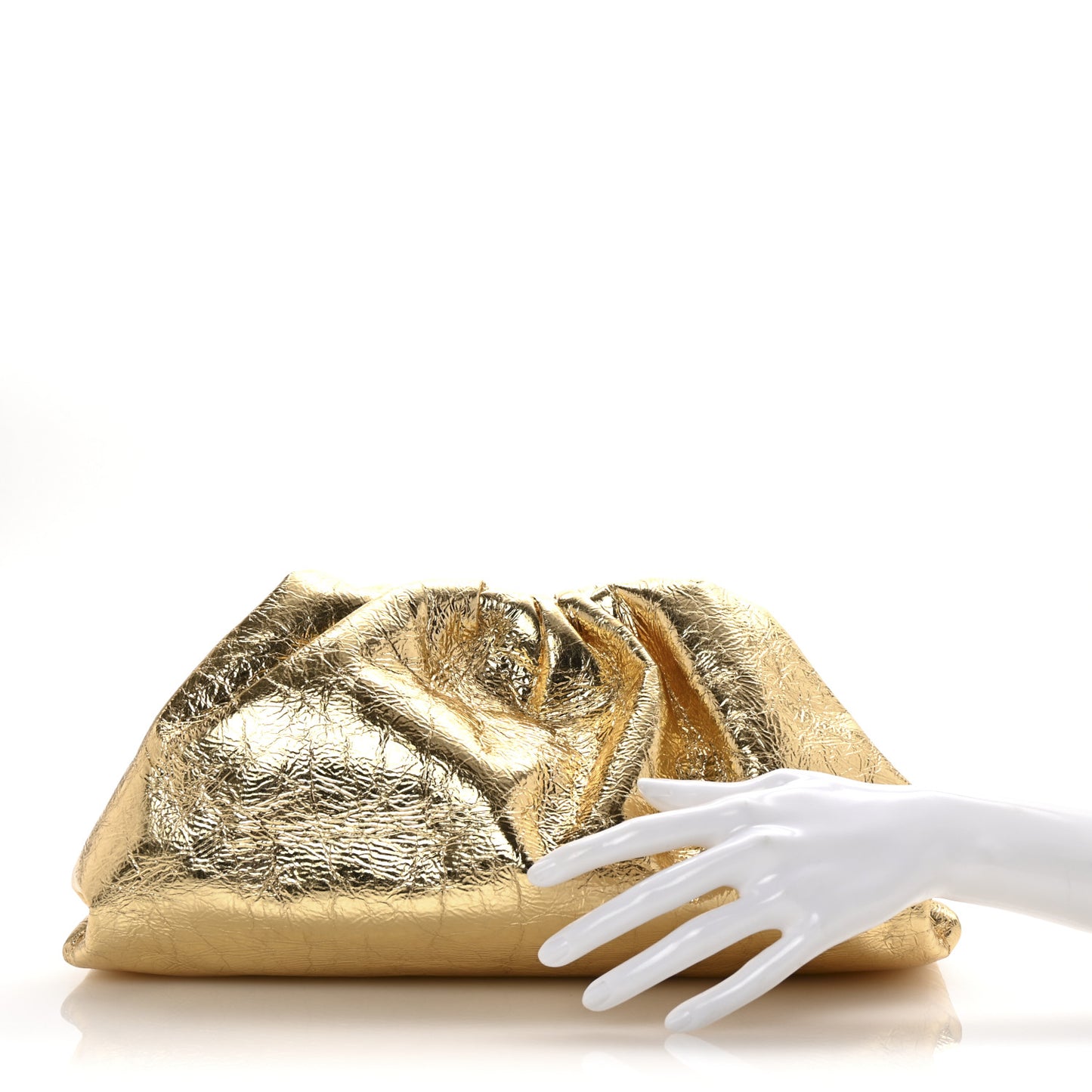 Bottega Veneta/ Bags/ Handbags /Bottega Veneta Metallic Crinkled Lambskin The Pouch Oversized Clutch Oro