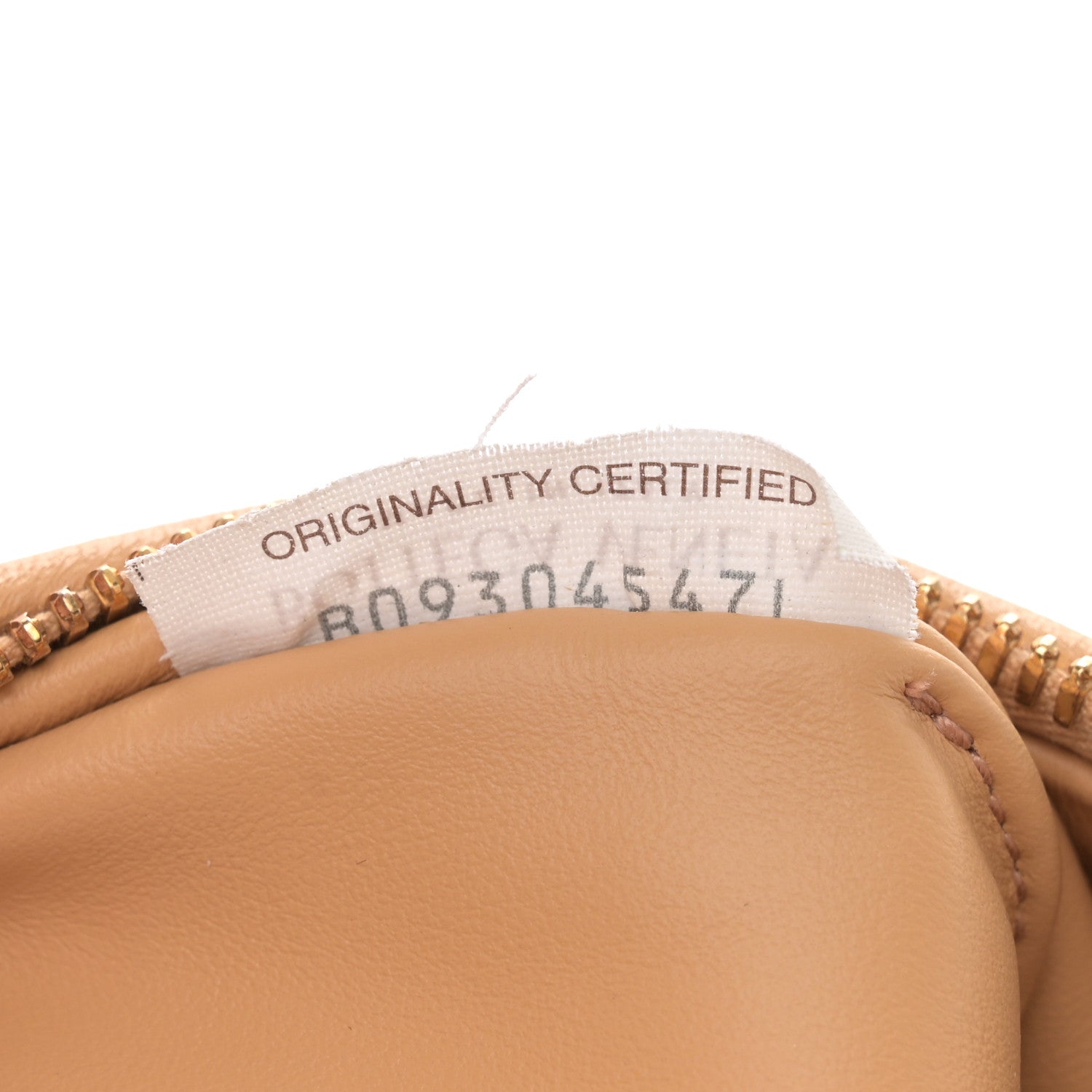 This is an authentic BOTTEGA VENETA Nappa Intrecciato Mini Jodie in Almond. This hobo bag is crafted of woven lambskin leather in beige, with an incorporated looping handle. The gold top zipper opens to an interior of smooth beige leather.Follow this item for alerts. Bottega Veneta is a registered trademark of Bottega Veneta. FASHIONPHILE is not affiliated with Bottega Veneta.