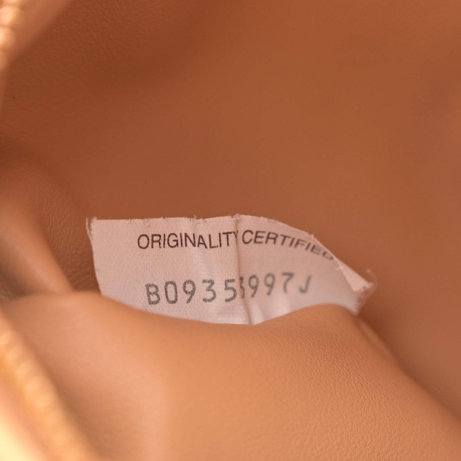 This is an authentic BOTTEGA VENETA Nappa Intrecciato Mini Jodie in Almond. This hobo is crafted of woven lambskin leather in beige with an incorporated looping shoulder strap and knot detail. The gold top zipper opens to a smooth beige leather interior.Follow this item for alerts. Bottega Veneta is a registered trademark of Bottega Veneta. FASHIONPHILE is not affiliated with Bottega Veneta.