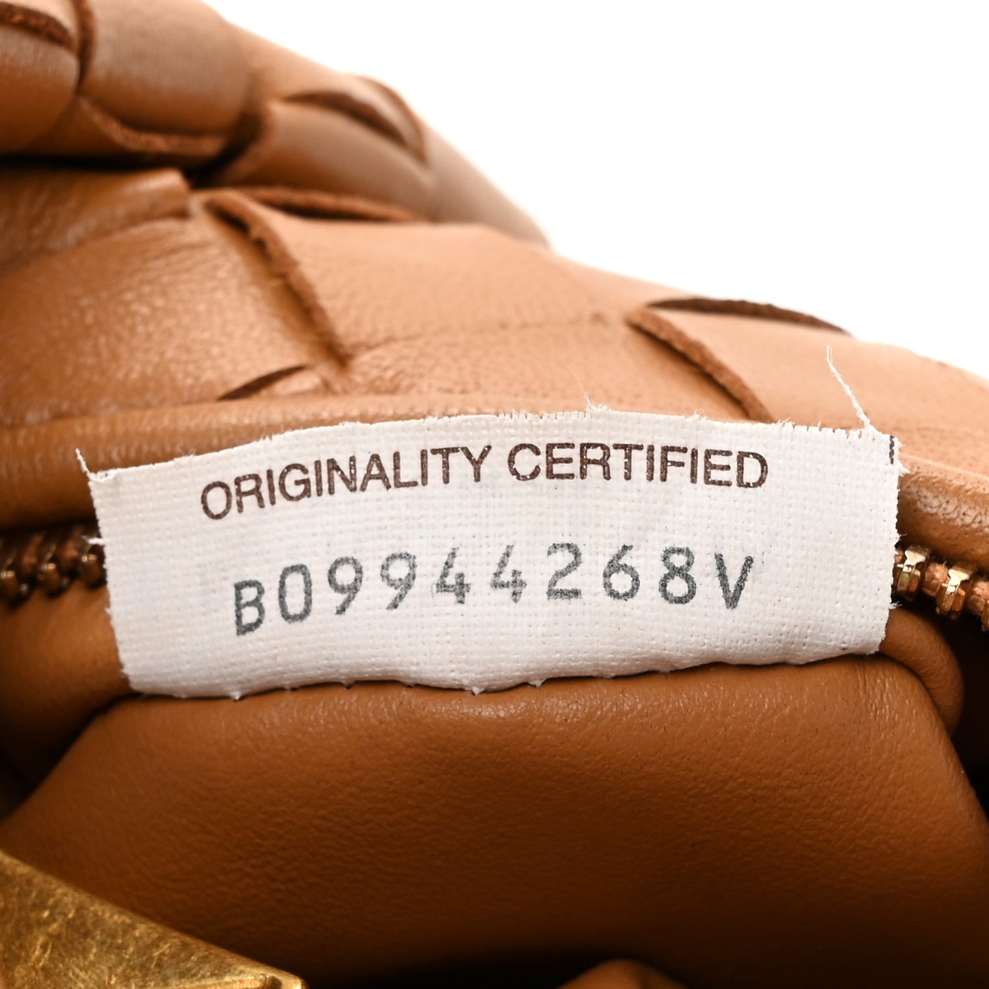 This is an authentic BOTTEGA VENETA Nappa Intrecciato Mini Jodie in Caramel. This shoulder bag is crafted of brown soft woven lambskin leather and gold hardware. The top zipper opens to a brown leather interior.Follow this item for alerts. Bottega Veneta is a registered trademark of Bottega Veneta. FASHIONPHILE is not affiliated with Bottega Veneta.