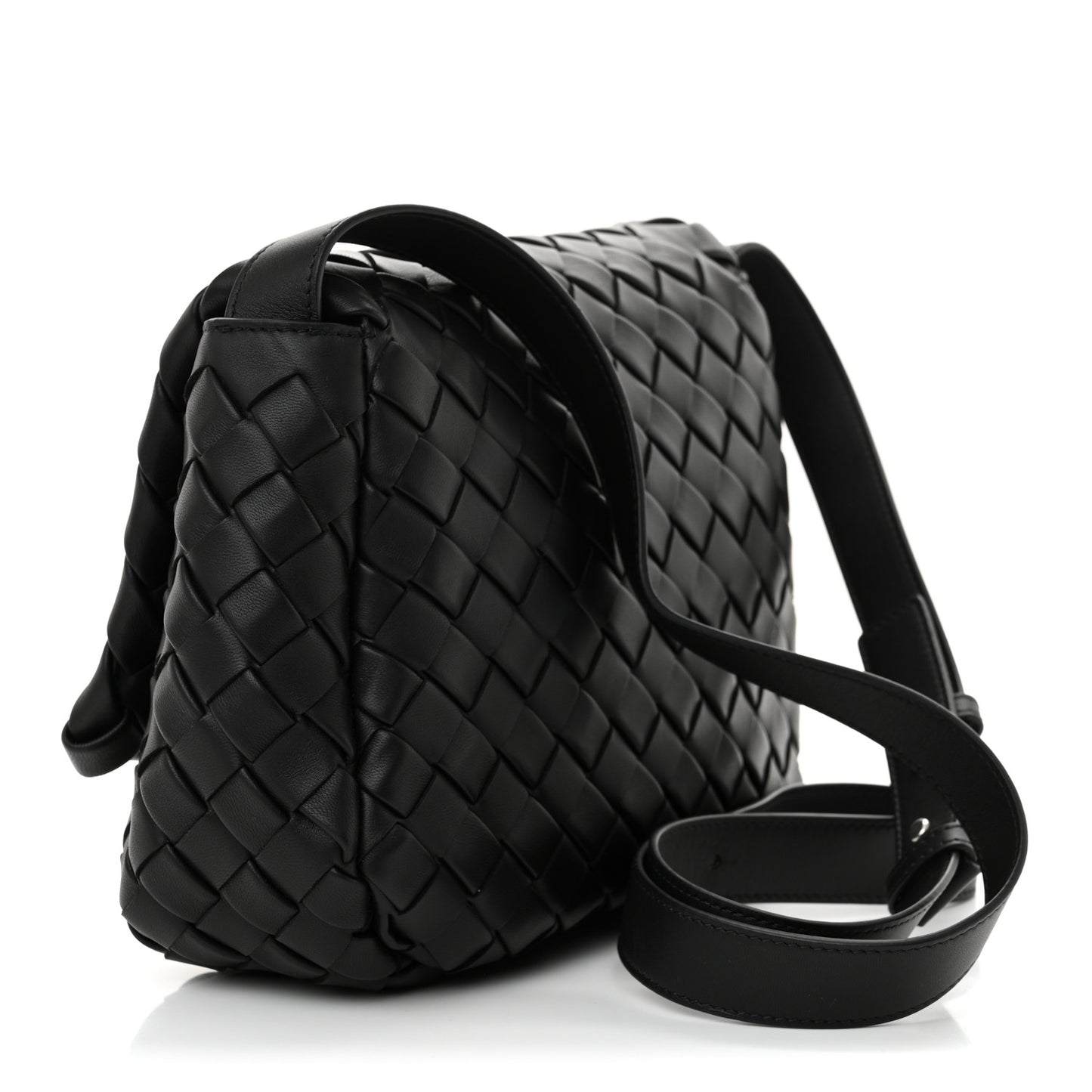 Nappa Intrecciato Small Cobble Messenger Bag Black
