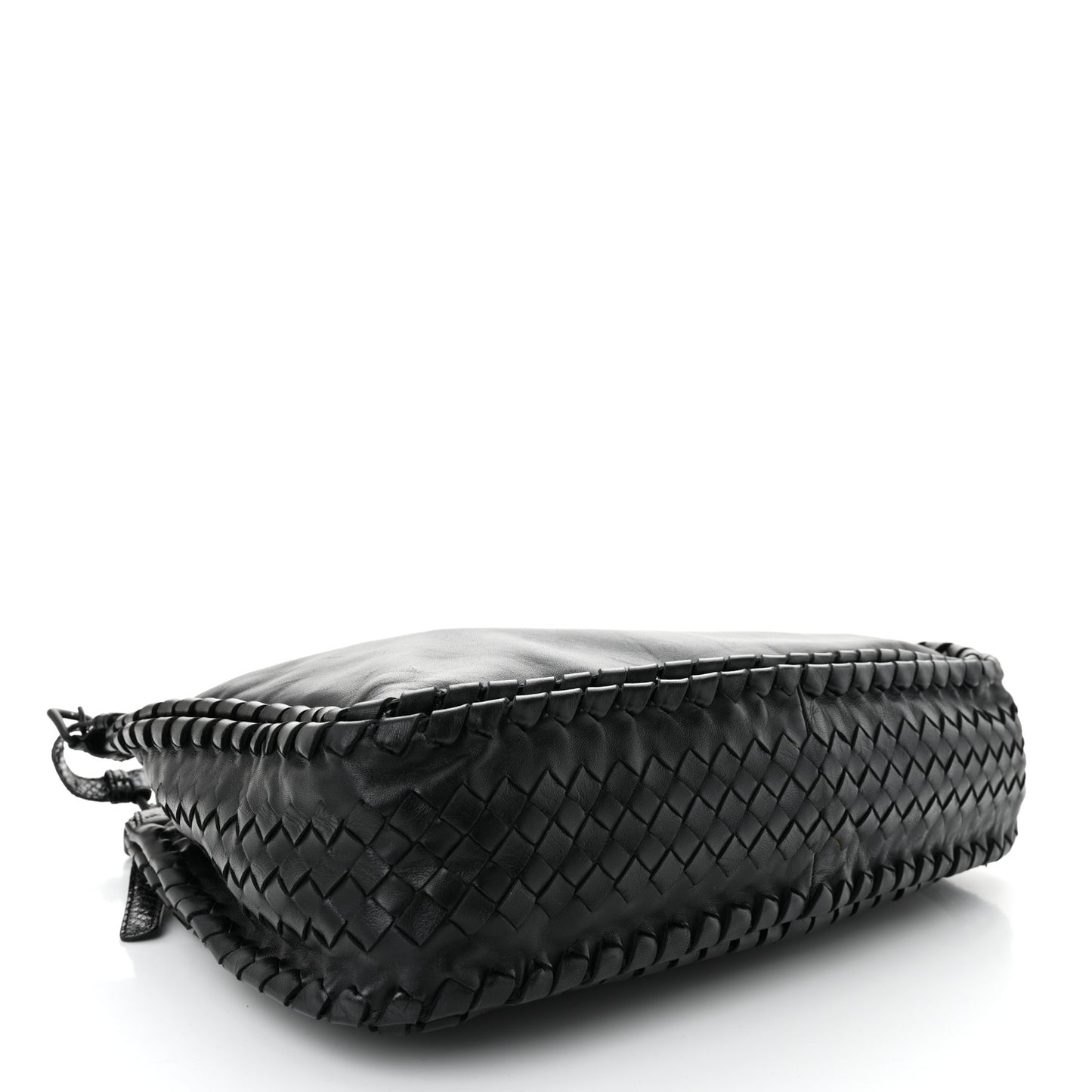 Bottega Veneta/ Bags/ Shoulder Bags /Bottega Veneta Nappa Intrecciato Snakeskin Hobo Black