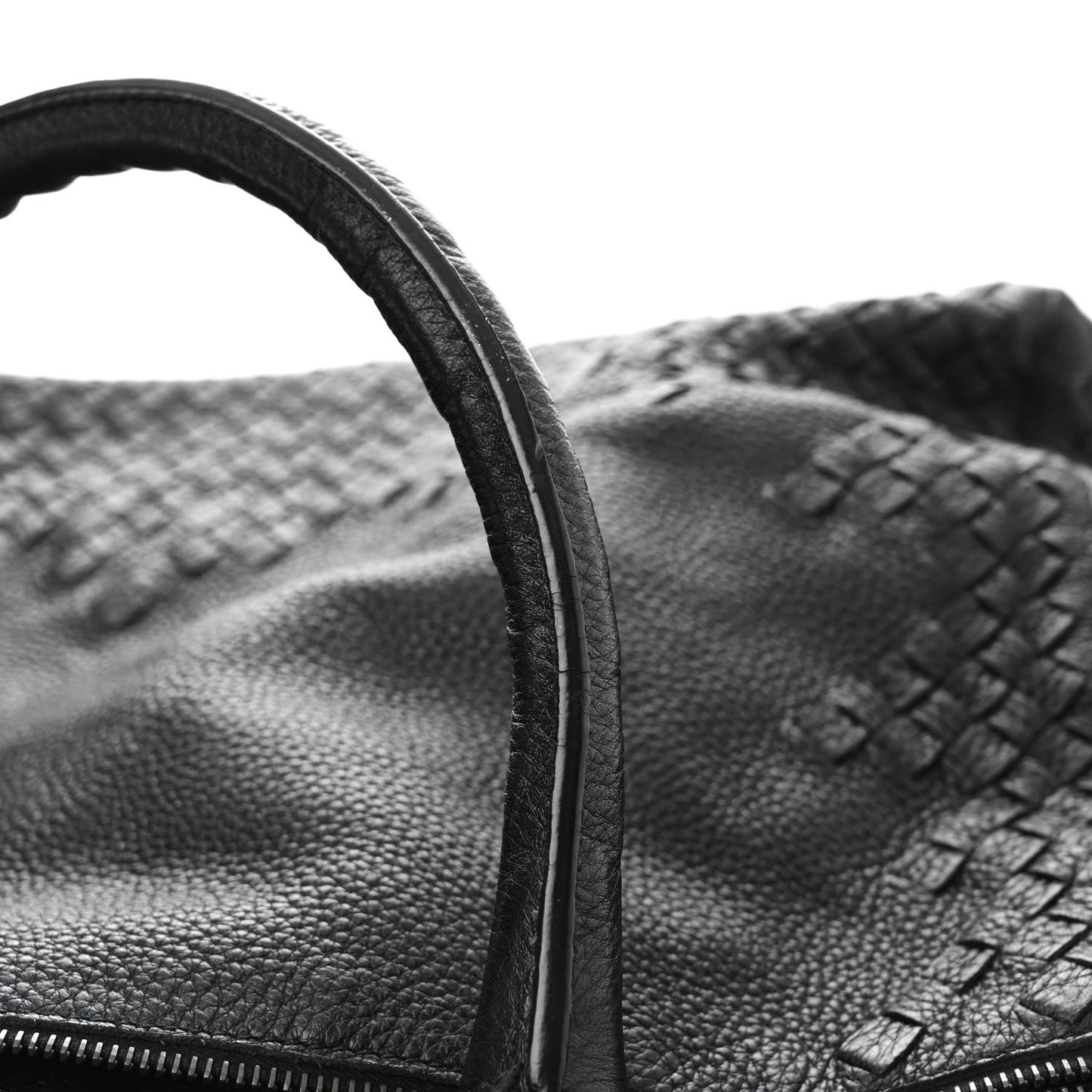 This is an authentic BOTTEGA VENETA Nappa Intrecciato Tote in Black. This tote is crafted of signature Bottega woven calf leather in black. The shoulder bag features rolled top handles, matte gunmetal hardware and two side zipper pockets. The top opens to a spacious taupe suede lining with zipper pockets.Follow this item for alerts. Bottega Veneta is a registered trademark of Bottega Veneta. FASHIONPHILE is not affiliated with Bottega Veneta.