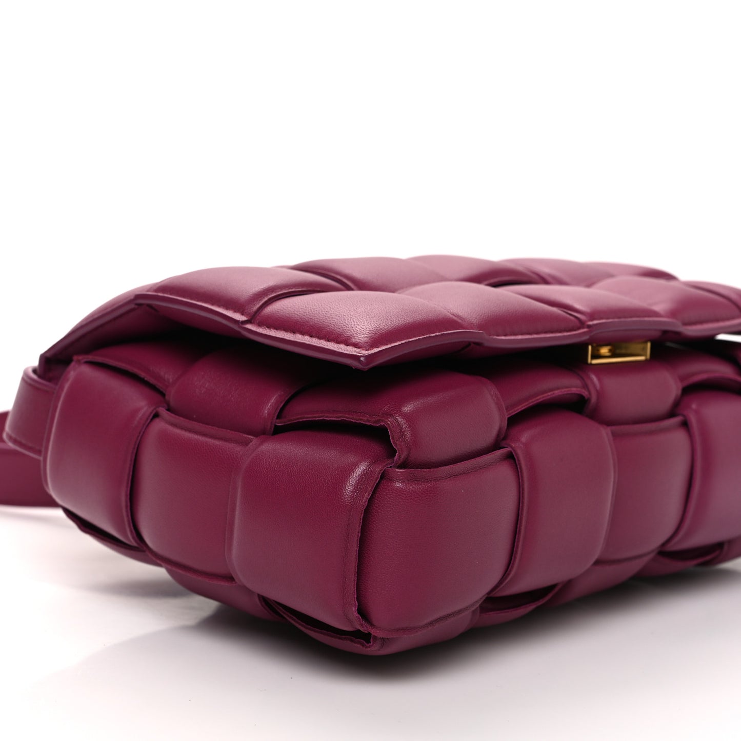 This is an authentic BOTTEGA VENETA Nappa Maxi Intreccio Padded Cassette Crossbody Bag in Cinnabar. This messenger bag is crafted of tightly woven, bonded dark pink leather. The bag features a matching adjustable crossbody strap with brass hardware and a front flap. The flap opens to a leather interior with a hanging zipper pocket.Follow this item for alerts. Bottega Veneta is a registered trademark of Bottega Veneta. FASHIONPHILE is not affiliated with Bottega Veneta.