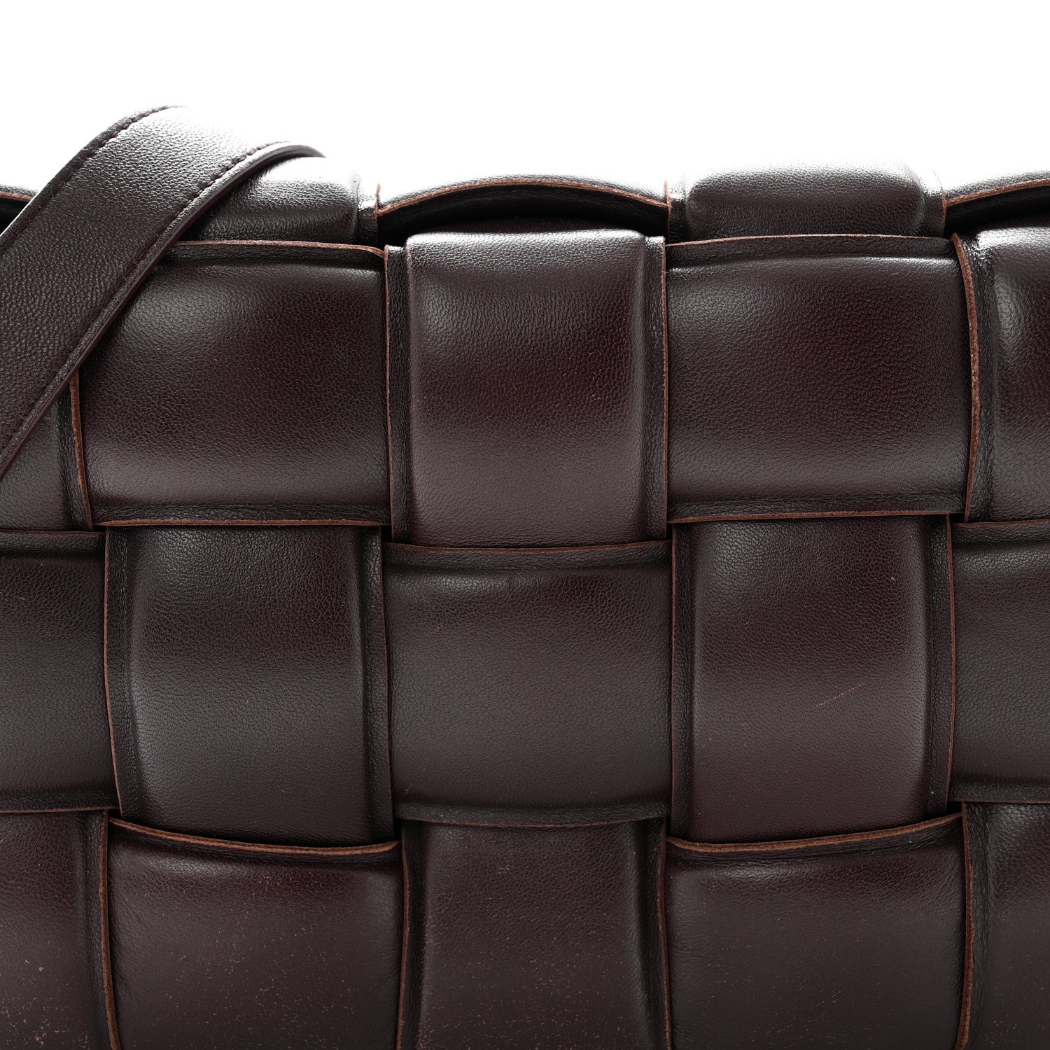 This is an authentic BOTTEGA VENETA Nappa Maxi Intreccio Padded Cassette Crossbody Bag in Grape. This messenger bag is crafted of tightly woven dark purple leather. The bag features a matching adjustable crossbody strap with brass hardware and a front flap. The flap opens to a leather interior with a hanging zipper pocket.Follow this item for alerts. Bottega Veneta is a registered trademark of Bottega Veneta. FASHIONPHILE is not affiliated with Bottega Veneta.