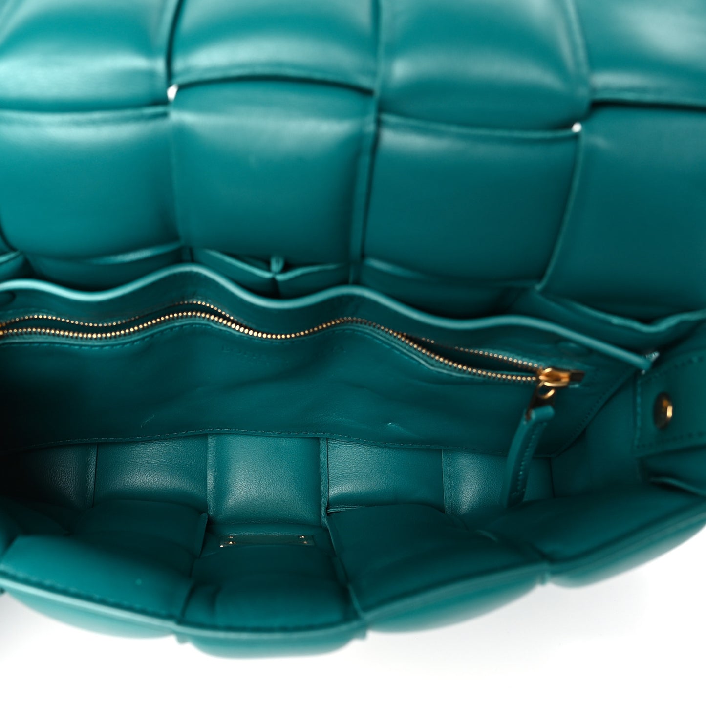 This is an authentic BOTTEGA VENETA Nappa Maxi Intrecciato Padded Cassette Crossbody Bag in Mallard. This stylish shoulder bag is crafted of woven lambskin leather in teal. The bag features an adjustable leather shoulder strap and gold hardware. The front flap opens to a matching leather interior with a zipper pocket.Follow this item for alerts. Bottega Veneta is a registered trademark of Bottega Veneta. FASHIONPHILE is not affiliated with Bottega Veneta.