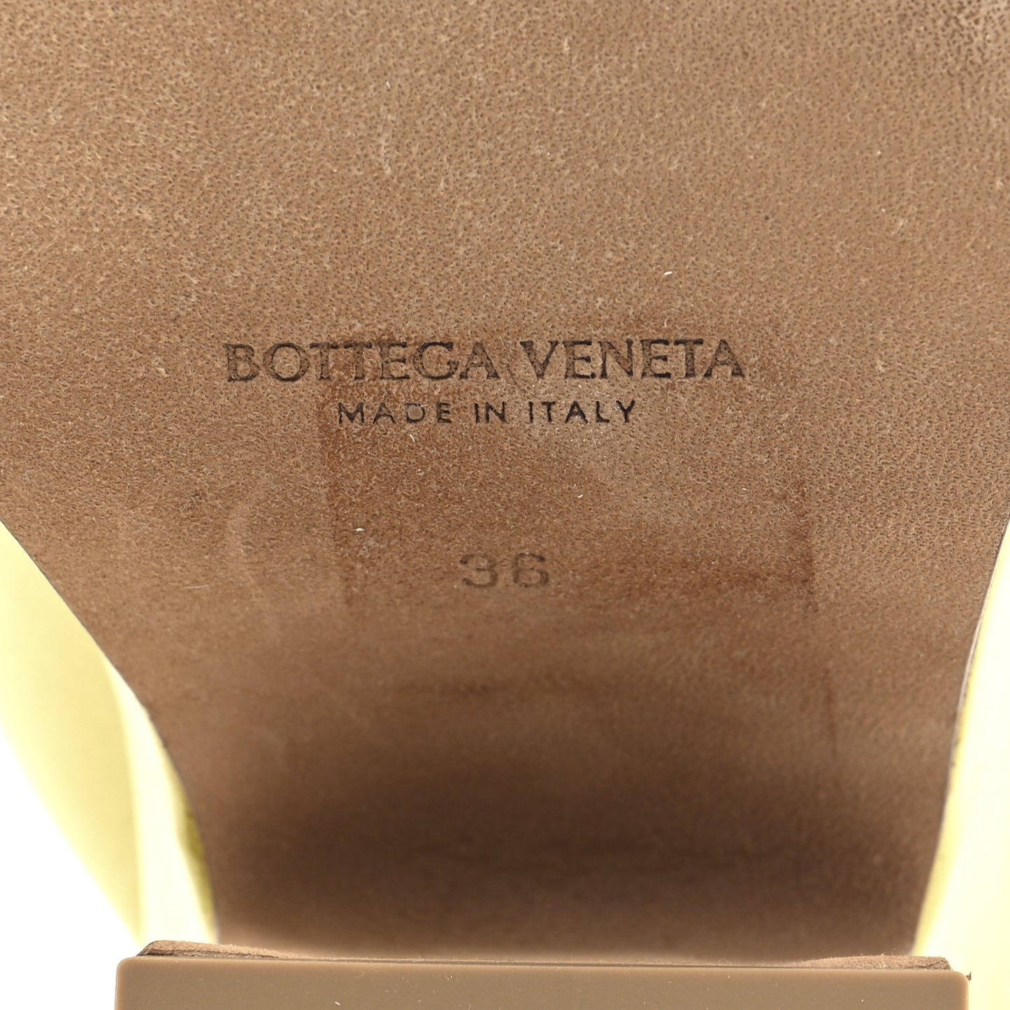 These are authentic BOTTEGA VENETA Lambskin Slide Platform 115 Wedge Sandal size 36 in Seagrass. These stunning mules are crafted of smooth lambskin leather in yellow. They feature a round toe with a tapered 4-inch heel and 1.25 inch platform.Follow this item for alerts. Bottega Veneta is a registered trademark of Bottega Veneta. FASHIONPHILE is not affiliated with Bottega Veneta.
