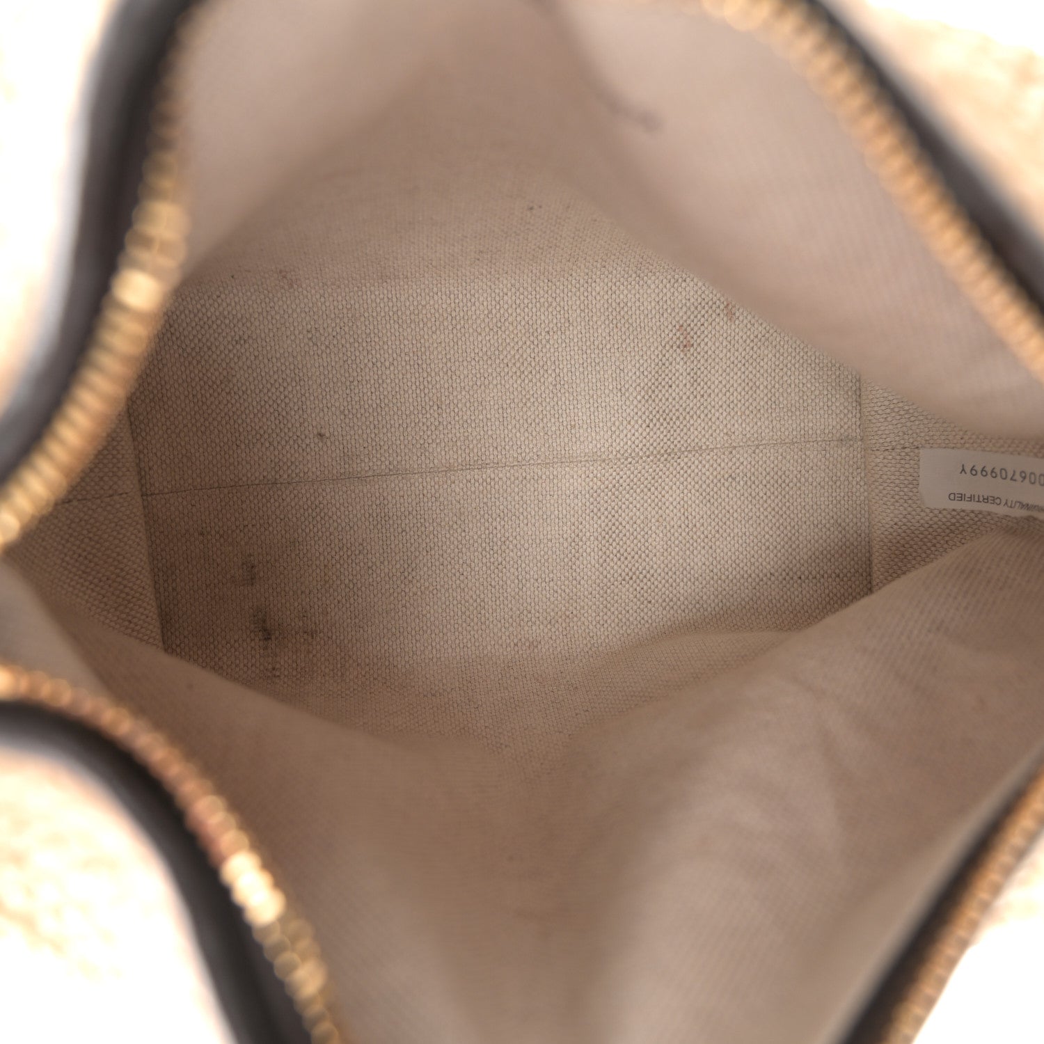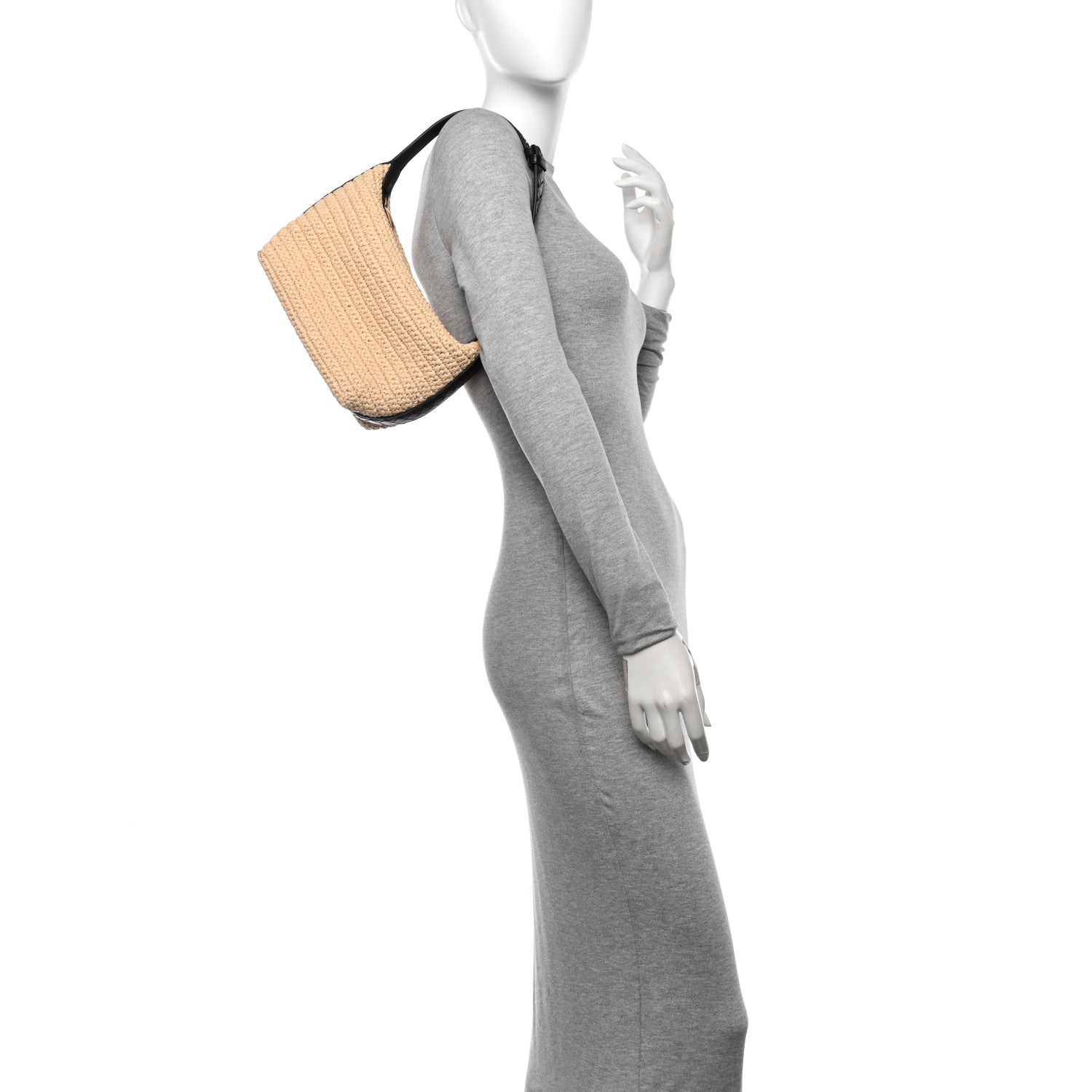 This is an authentic BOTTEGA VENETA Raffia Woven Nappa Intrecciato Mini Wallace in Natural and Fondant. This stylish shoulder bag is beautifully crafted of natural beige woven raffia. It features dark brown intrecciato leather trim, an adjustable top handle, and a gold top zipper that opens to a beige fabric interior.Follow this item for alerts. Bottega Veneta is a registered trademark of Bottega Veneta. FASHIONPHILE is not affiliated with Bottega Veneta.