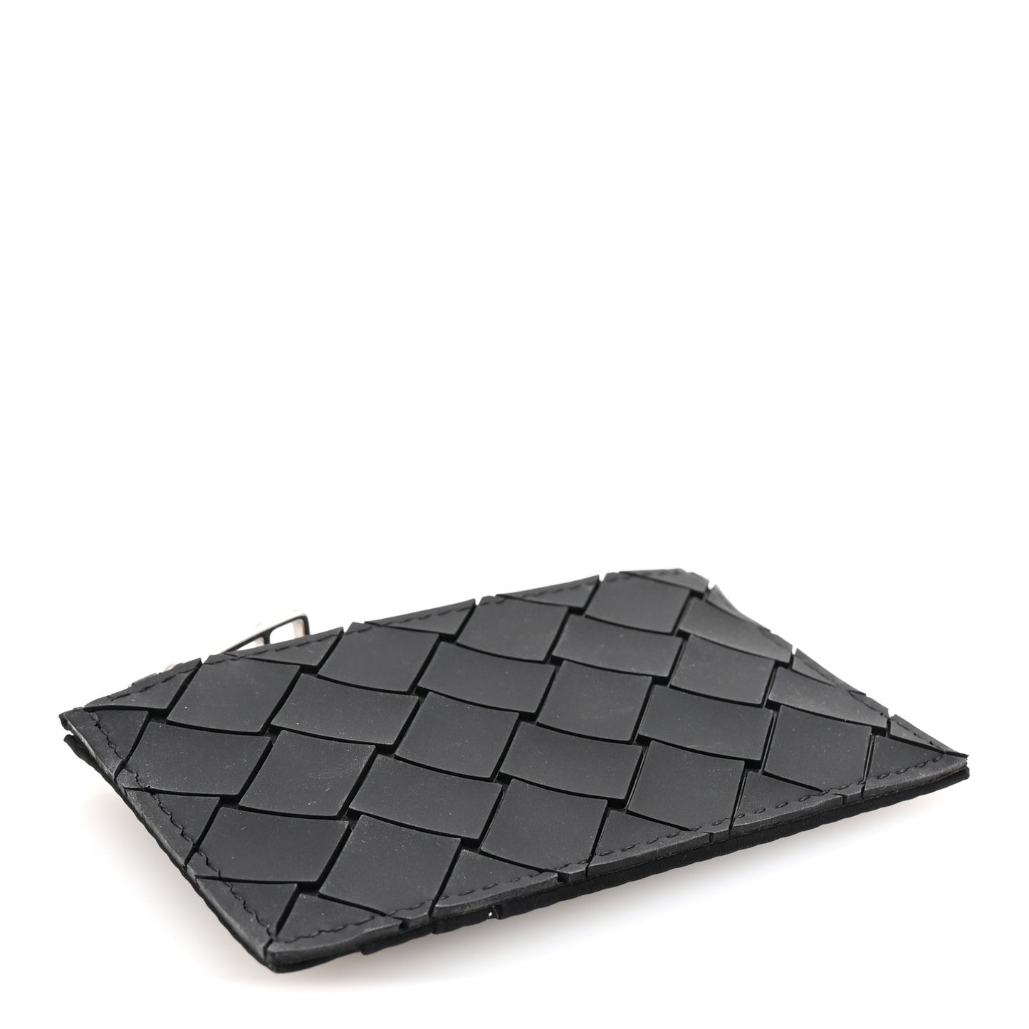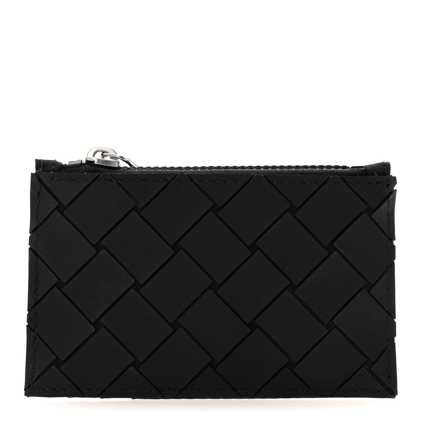 Bottega Veneta/ Accessories/ Wallets /Bottega Veneta Rubber Nylon Intrecciato Zip Card Holder Black