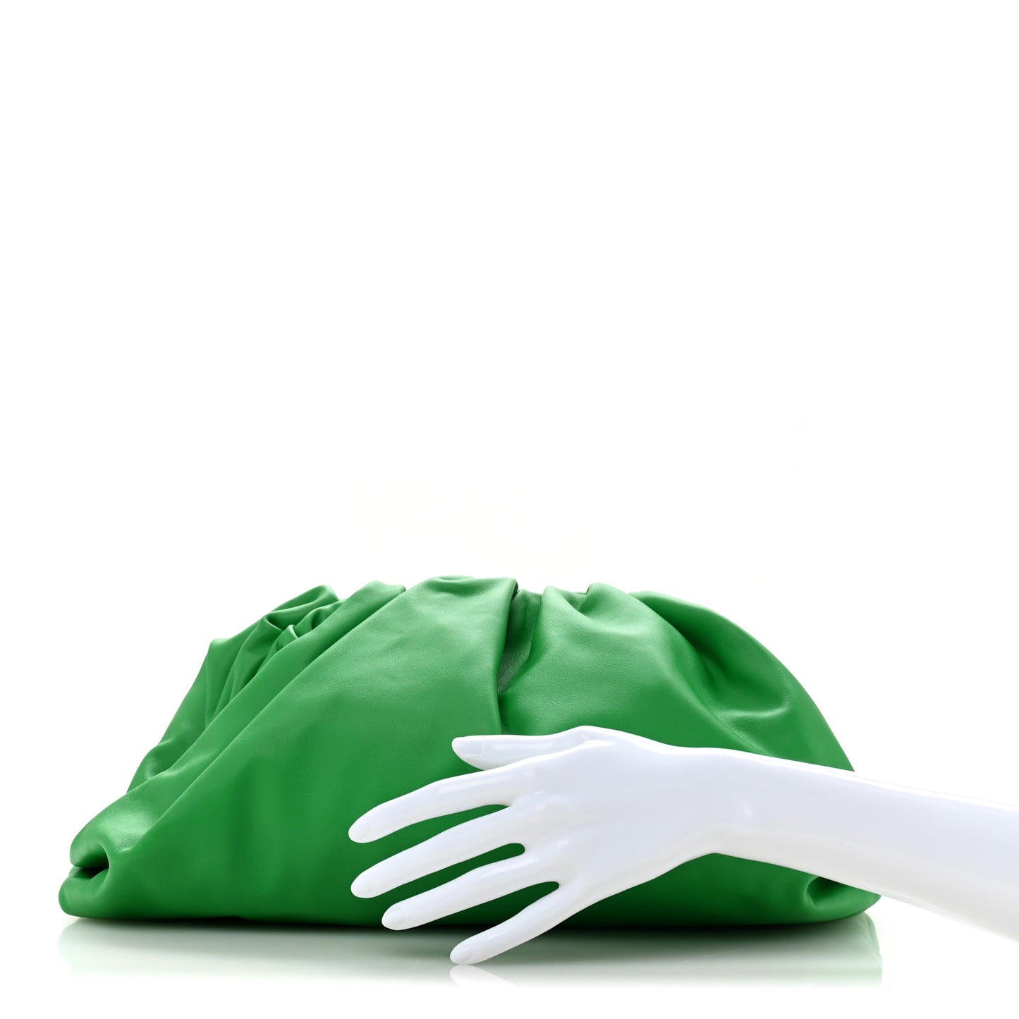 This is an authentic BOTTEGA VENETA Smooth Butter Calf The Pouch Oversized Clutch in Parakeet. This stylish clutch is crafted of calfskin leather in green. The bag features a ruched leather magnetic top opening that opens to a matching leather interior.Follow this item for alerts. Bottega Veneta is a registered trademark of Bottega Veneta. FASHIONPHILE is not affiliated with Bottega Veneta.