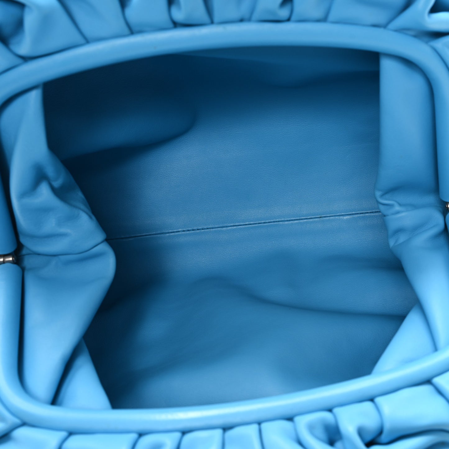 This is an authentic BOTTEGA VENETA Smooth Butter Calf The Pouch Oversized Clutch in Swimming Pool. This stylish clutch is crafted of calfskin leather in blue. The bag features a ruched leather magnetic top that opens to a matching leather interior.Follow this item for alerts. Bottega Veneta is a registered trademark of Bottega Veneta. FASHIONPHILE is not affiliated with Bottega Veneta.