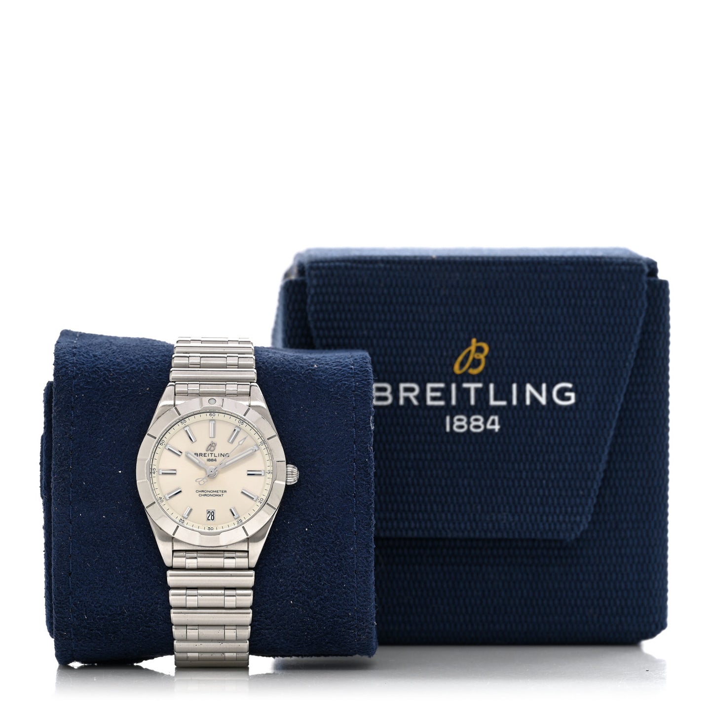 This is an authentic BREITLING Stainless Steel 32mm Chronomat Quartz Watch White A77310101A2A1. The watch is crafted of stainless steel and features a white dial, silver hands, date display, sapphire crystal, and a quartz movement.Follow this item for alerts. Breitling is a registered trademark of Breitling. FASHIONPHILE is not affiliated with Breitling.