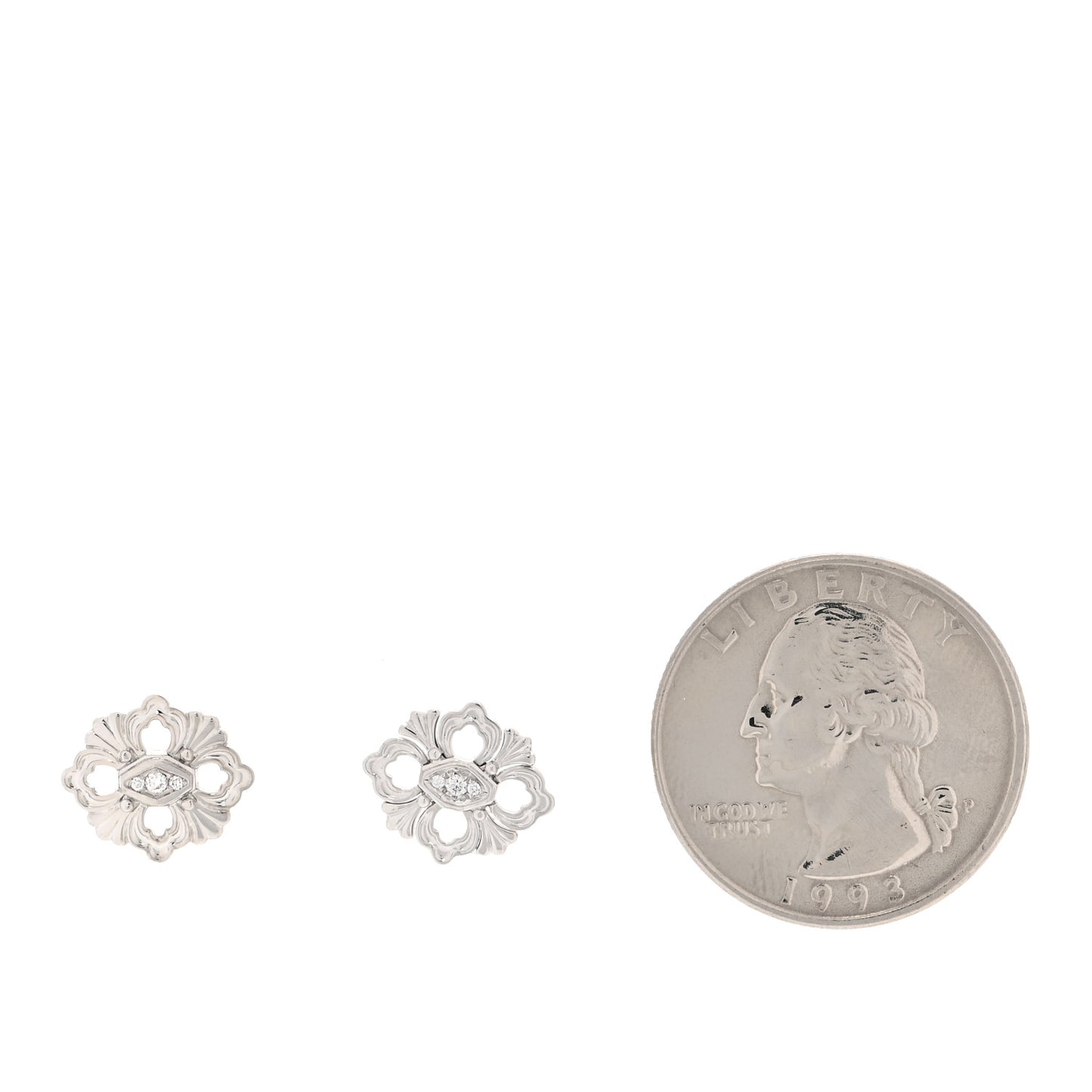 This is an authentic pair of BUCCELLATI 18K White Gold Diamond Opera Earrings. The earrings are crafted of 18 karat white gold and feature ornate shield motifs set with diamonds, approximately .04 total carat weight. PLEASE NOTE: The prongs have different lengths due to this item being an assembled piece. There is only one earring backing.Follow this item for alerts. Buccellati is a registered trademark of Buccellati. FASHIONPHILE is not affiliated with Buccellati.